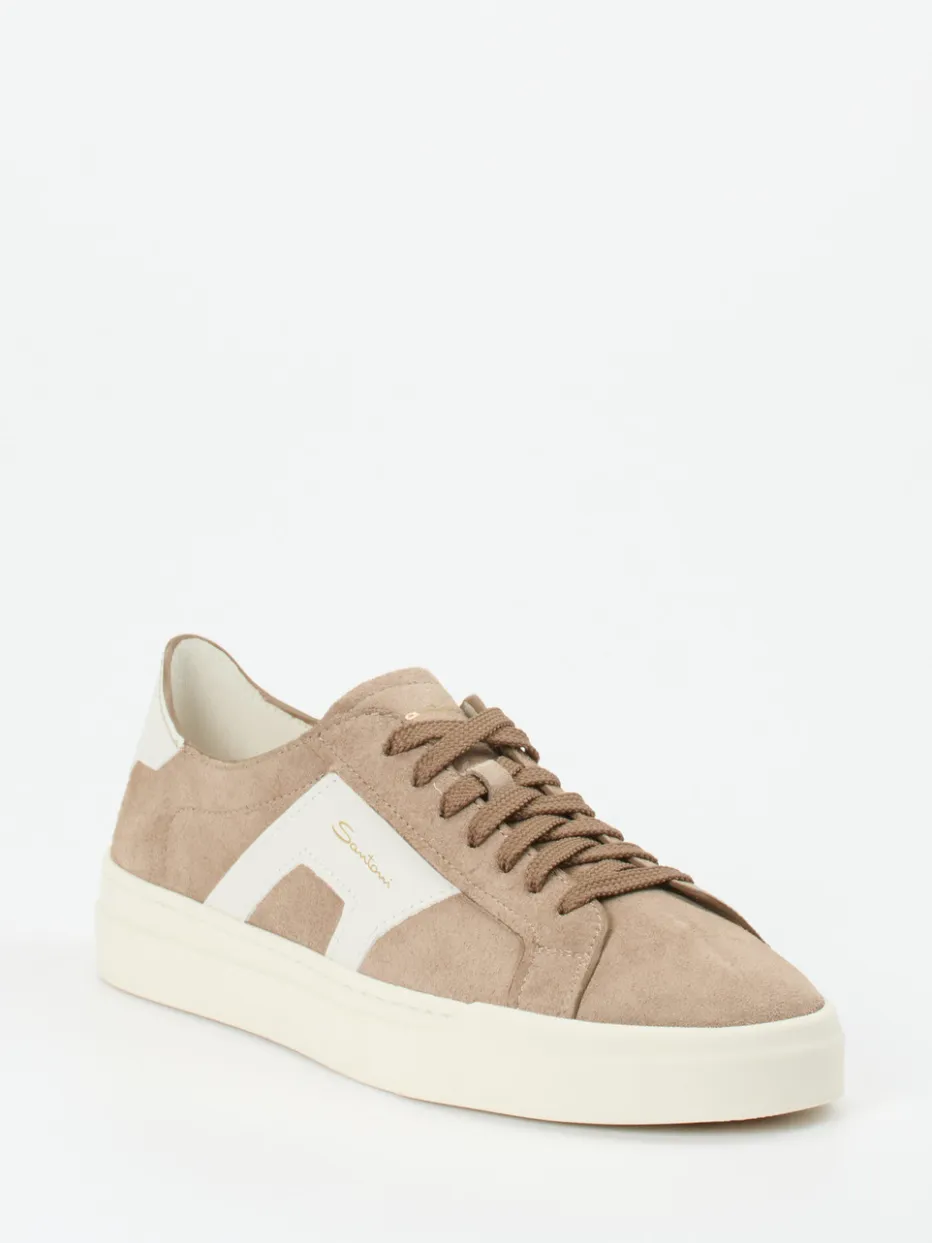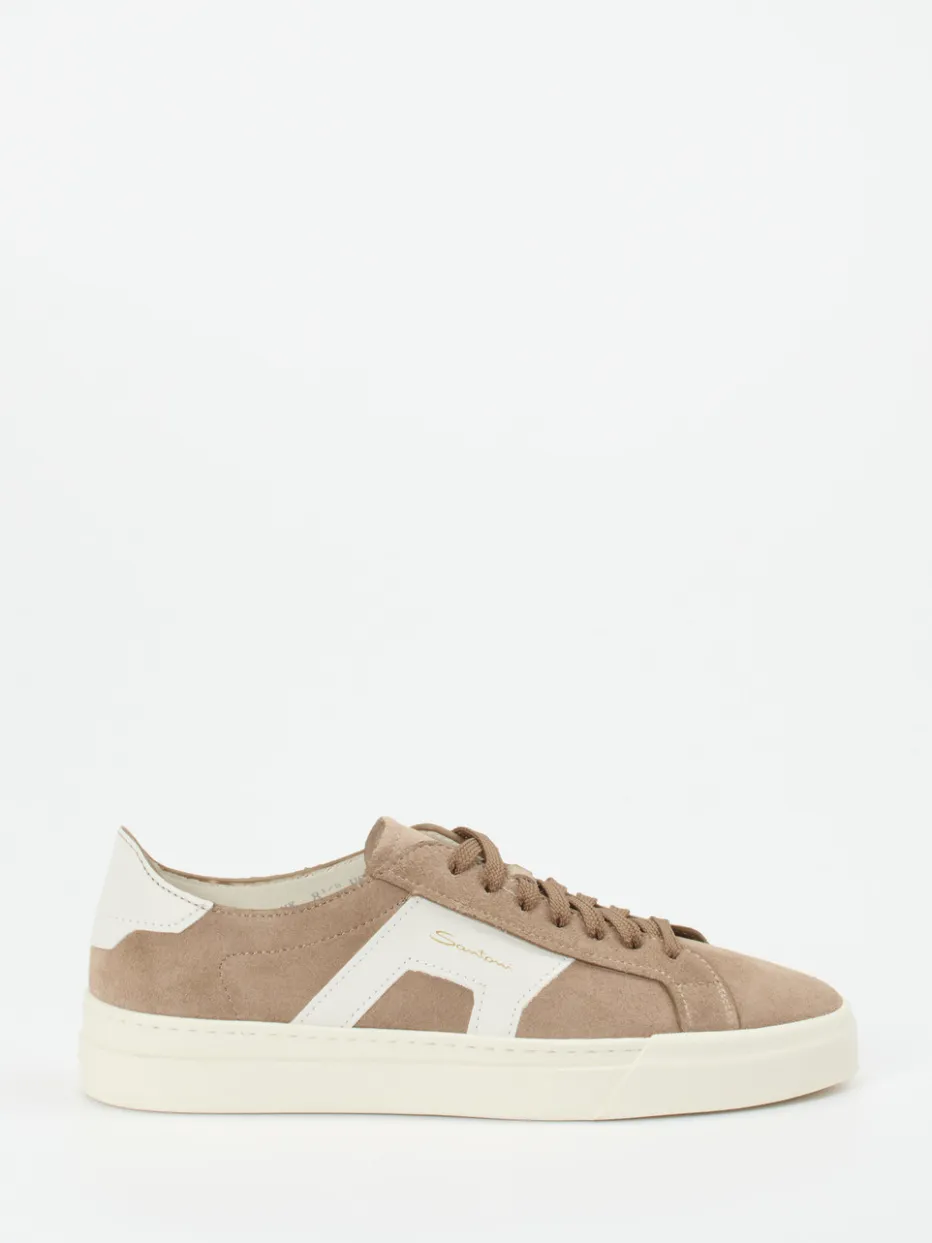 Feinschliff für den Casual-Style.Santoni präsentiert mit diesem Sneaker ein Modell der dezent-luxuriösen Klasse. Ideal für den gepflegten Freizeit-Look, punktet der flach geschnittene Low-Top mit hochwertigem Veloursleder, dessen sandbeiger Ton modern und vielseitig wirkt. Glatte Cremeleder-Akzente, tonale Ziernähte sowie ein goldfarbener Logo-Schriftzug unterstreichen den modularen „Quiet Luxury“-Charakter. Das austauschbare, lederbezogene Fußbett sorgt für Alltagstauglichkeit, während die Gummisohle mit rutschhemmendem Profil Komfort garantiert. Perfekt zu neutralen Chinos oder hellem Strick kombinierbar. Santoni-Design, das Understatement mit Premium-Verarbeitung verbindet.