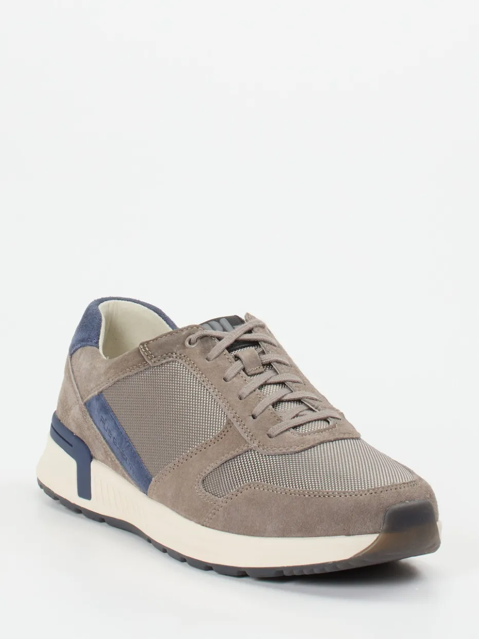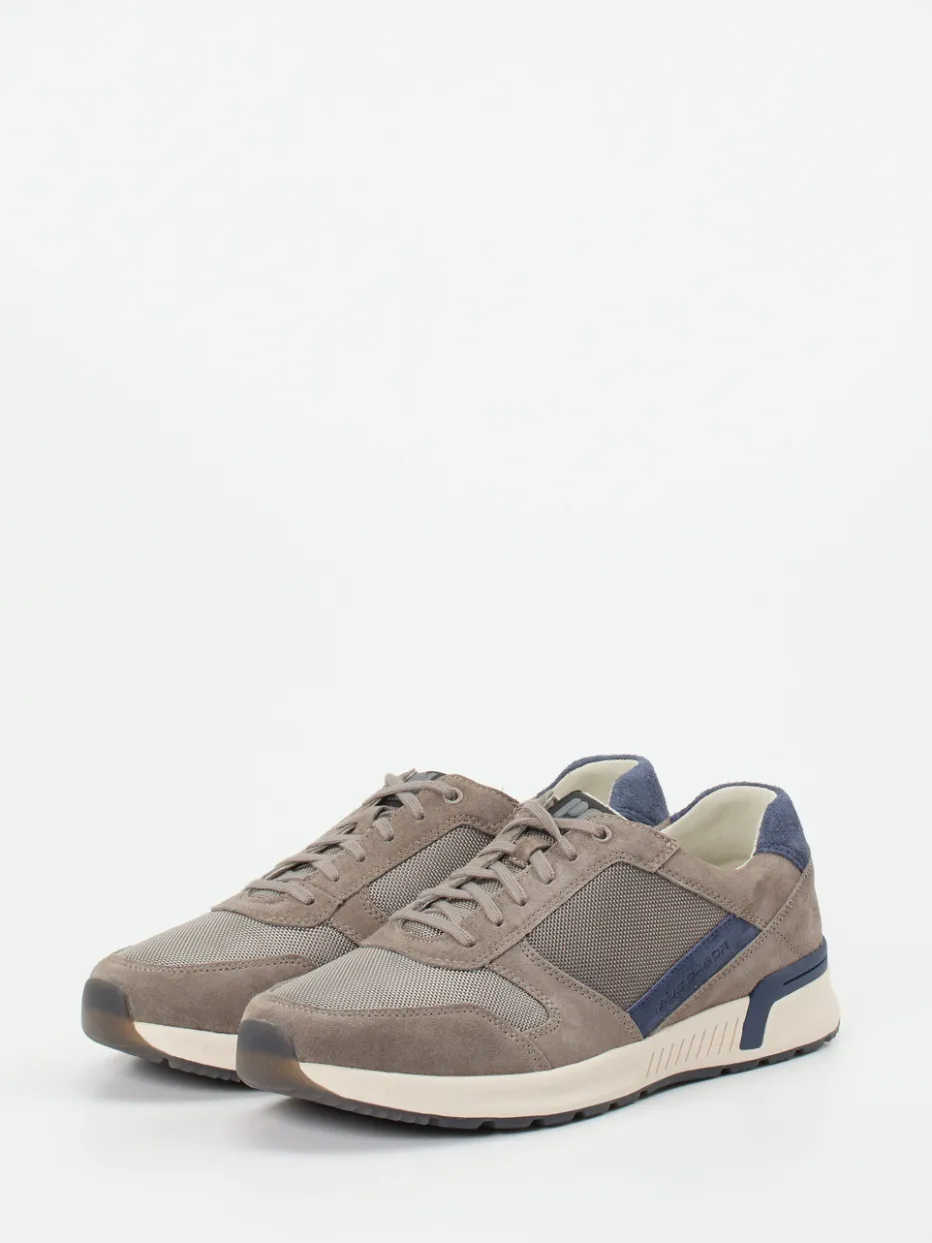 Vielseitiger Komfort für urbane Tage.Die Marke Pius Gabor präsentiert einen sportlich-eleganten Herren-Sneaker für Alltag und Freizeit. Die Kombination aus taupegrauem Veloursleder und strukturiertem Mesh verleiht dem Schuh eine moderne Optik mit dezenter Retro-Note. Dunkelblaue Overlays setzen ausdrucksstarke Kontraste. Die klassische Schnürung und das gepolsterte Fersenpolster sorgen für bequemen Halt. Eine stoßdämpfende Gummisohle sowie die Kork-Zwischensohle unterstützen den Gehverlauf – ideal für lange Tage. Durch das wechselbare Fußbett ist der Sneaker auch für Einlagen geeignet. In Kombination mit Chinos oder Jeans wirkt der Look stilsicher und lässig zugleich. Pius Gabor steht für hochwertige Verarbeitung mit sportiv-minimalistischem Anspruch.