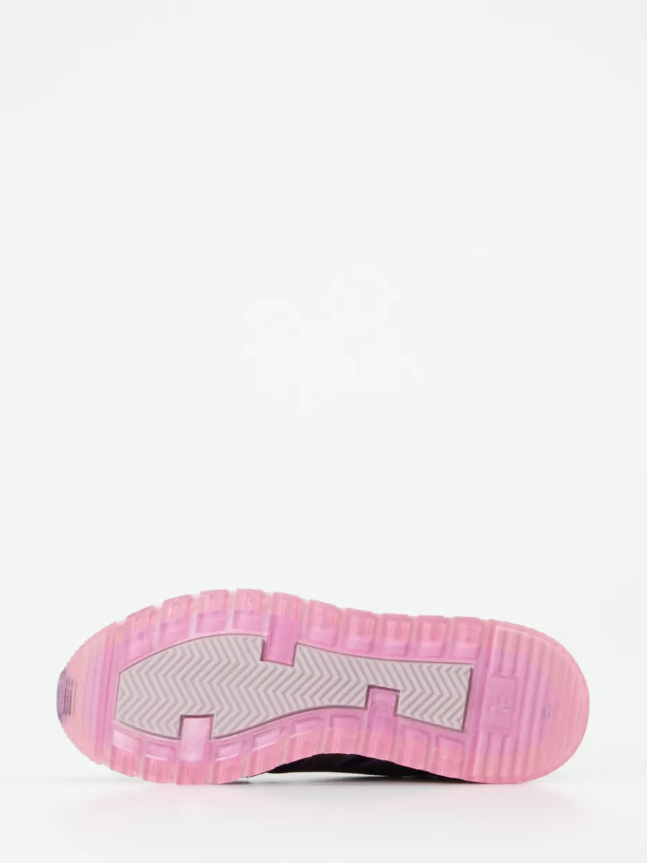 Ideal für bewegte Tage im urbanen Umfeld: Das Modell aus hochwertigem Veloursleder kombiniert luftiges Mesh und silberfarbene Metallic-Elemente zu einem charakterstarken Materialmix. Die dominante schwarze Farbgebung wird durch violette Details und eine pinkfarbene Laufsohle expressiv akzentuiert. Die klassische Running-Silhouette mit gepolsterter Ferse bietet alltagstauglichen Komfort und unterstreicht den Streetstyle-Charakter mit Y2K-Vibes. Die mehrlagige Gummisohle schafft ein stabiles Laufgefühl, Schnürung sorgt für individuelle Passform. Kombiniert zu Cropped Hoodie oder Sportleggings ein stylischer Eyecatcher.