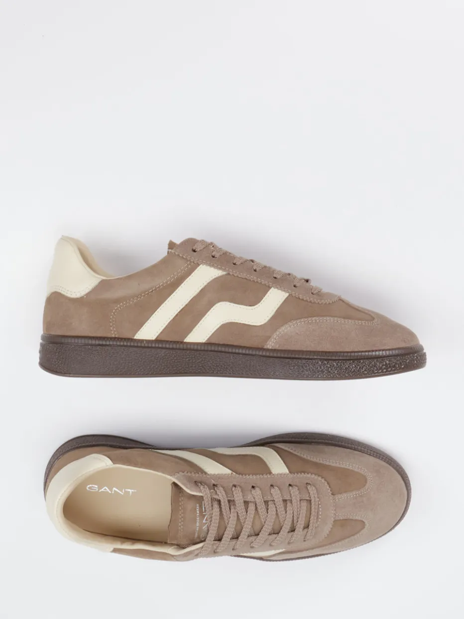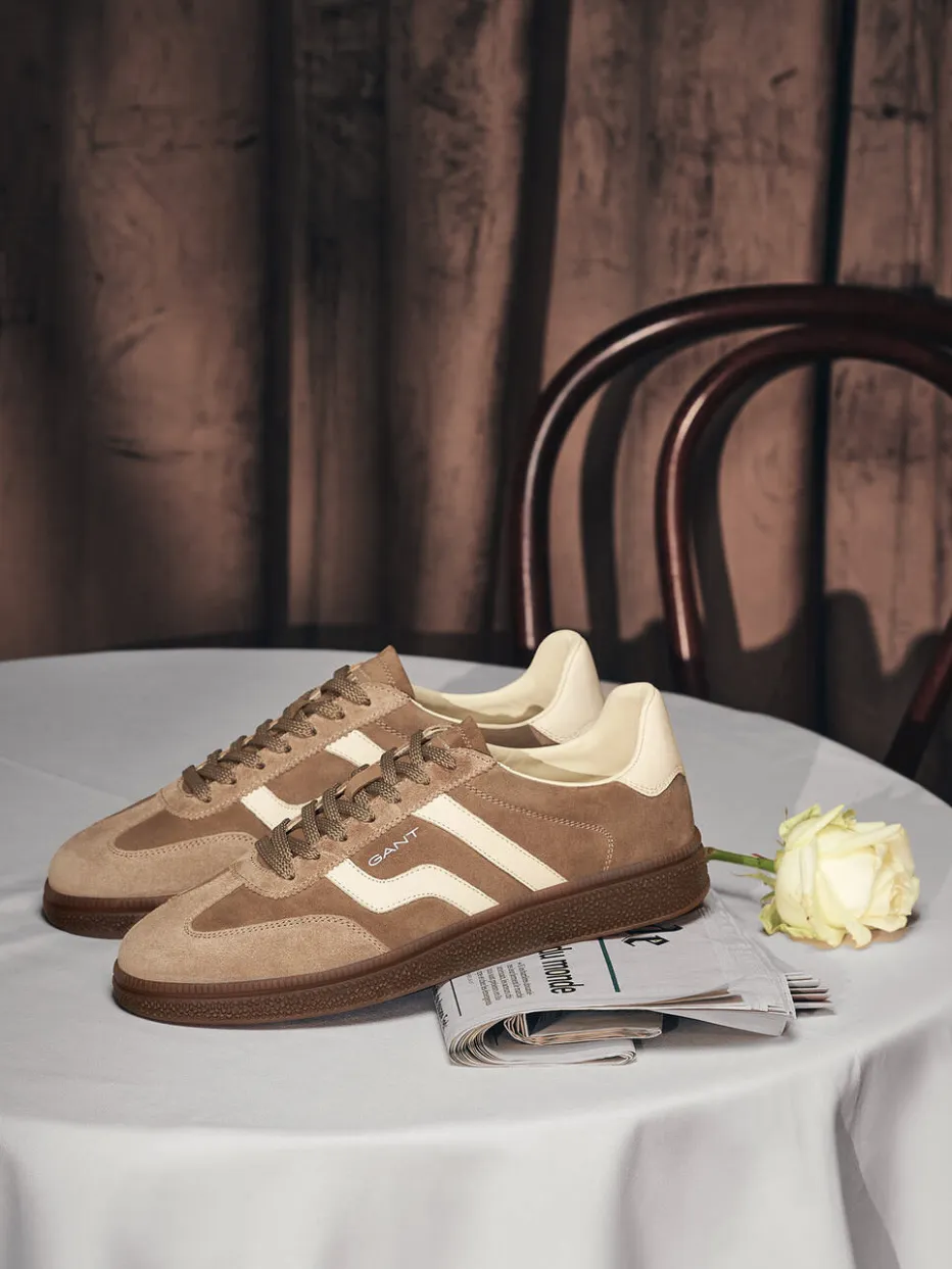 Stilbewusst durch den Alltag.Dieser Herren-Sneaker von Gant vereint dezente Gestaltung mit klarer Retro-Ästhetik. Mit weich strukturiertem Veloursleder, matter Oberfläche und tonalen Nähten präsentiert sich das Modell in Mittelbraun mit cremefarbenen Kontraststreifen und dunkelbrauner Profilsohle. Der klassische, flach geschnittene Sneaker verfügt über eine komfortable Schnürung, ein ledergefüttertes Inneres und ein herausnehmbares Fußbett – perfekt für langfristiges Tragen. Inspiriert von Retro-Sportswear bietet er vielseitige Kombinierbarkeit für Casual Looks mit Chino oder Relax-Wear. Puristisches Design mit markentypischer Qualität für stilvolle Alltagsmomente.