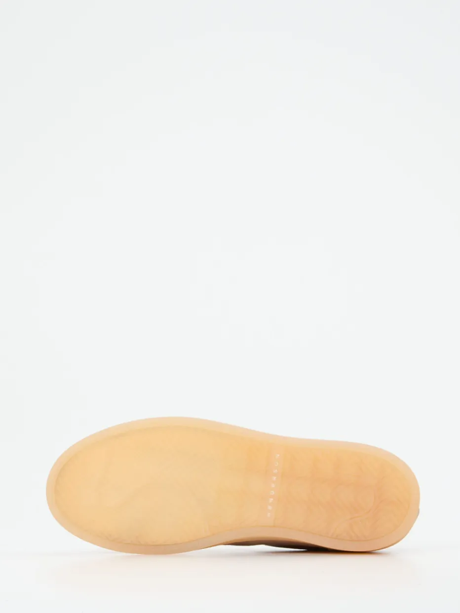 Understatement für den Sommer.Der Herren-Sneaker von Henderson präsentiert sich als stilvoller Begleiter urbaner Freizeitgarderobe. Das samtig angeschliffene Veloursleder in softem Sandbeige setzt auf eine dezente, matte Optik und liegt mit seiner Ton-in-Ton-Schnürung ganz im Trend von „Quiet Luxury“. Die klassisch flache Silhouette wird durch eine helle Gummisohle sportiv ergänzt. Fein gearbeitete Details wie eine rückseitige Zuglasche und die dezente Logo-Prägung unterstreichen den cleanen Look. Innen bietet Kalblederfutter mit gepolstertem Wechselfußbett Komfort. Vielseitig zu kombinieren, passt der Schuh ideal zu Leinenblouson und Chinohose – ein Must-have für entspannte City-Styles. Henderson steht für handgefertigte Qualität mit italienischer Eleganz.