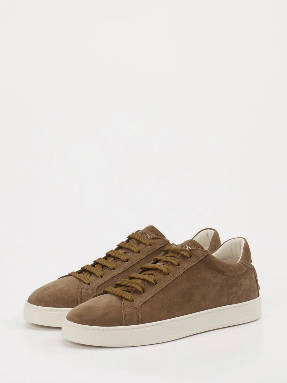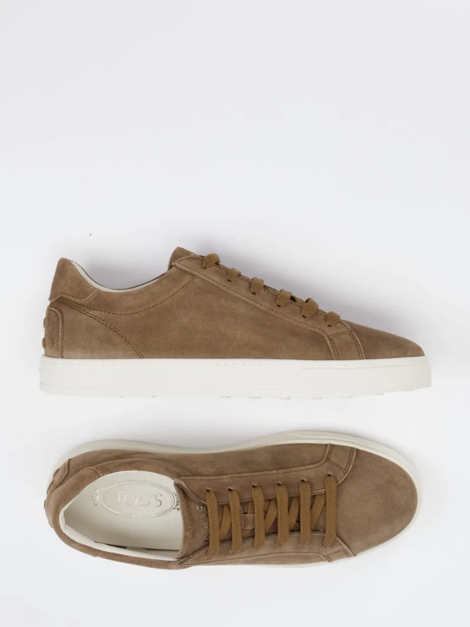 Das hochwertige Veloursleder in gedecktem Braun und das minimalistische Design verleihen diesem Sneaker von Tod’s eine moderne Ruhe und zeitlose Eleganz.