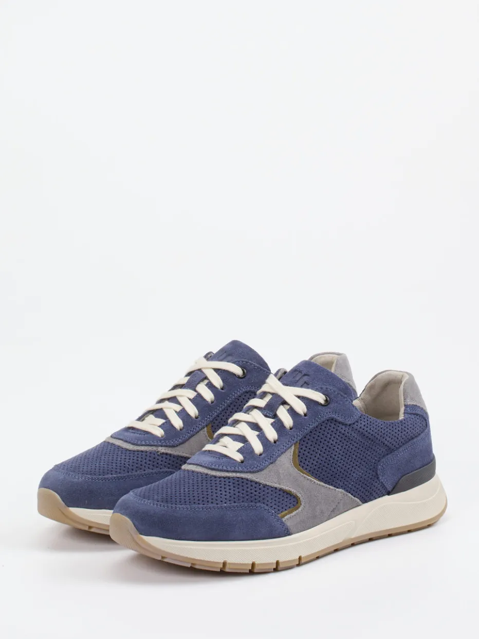 Ideal für entspannte City-Tage oder lange Spaziergänge: Das Modell besteht aus samtig angeschliffenem Veloursleder in Jeansblau mit atmungsaktiver Perforierung und grauen Kontrastelementen. Beige Schnürbänder setzen dezente Akzente, während die profilierte Gummisohle Rutschfestigkeit bietet. Wechselfußbett, gepolsterte Ferse und superflexible Sohlen unterstützen ein komfortables Tragegefühl. Design und Funktion heben den Retro Runner Trend stilvoll in den Alltag. Kombiniert zu heller Steppjacke oder entspannten Stoffhosen entsteht ein gepflegt-lässiger Look.