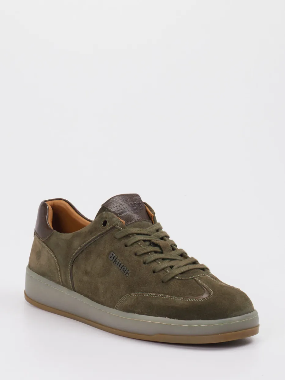Streetstyle in zurückhaltendem Farbton.Blauer präsentiert einen Herren-Sneaker in klassischer Low-Top-Form. Das Modell überzeugt mit olivgrünem Veloursleder, kombiniert mit dunkelbraunen Akzenten und mattem Finish. Der Ton-in-Ton gehaltene Look mit geprägtem Branding und verstärkter Fersenkappe wirkt minimalistisch und dennoch markant. Die glatte, tonale Gummisohle bietet rutschhemmenden Halt – perfekt für den Alltag oder das Casual-Büro. Schnürverschluss, gepolsterter Komfort und weiche Ledertexturen sorgen für ein angenehmes Tragegefühl. Lässt sich ideal mit Chino-Hosen oder Jeans kombinieren. Die markentypische Materialqualität steht für stilvollen Komfort bei urbaner Lässigkeit.