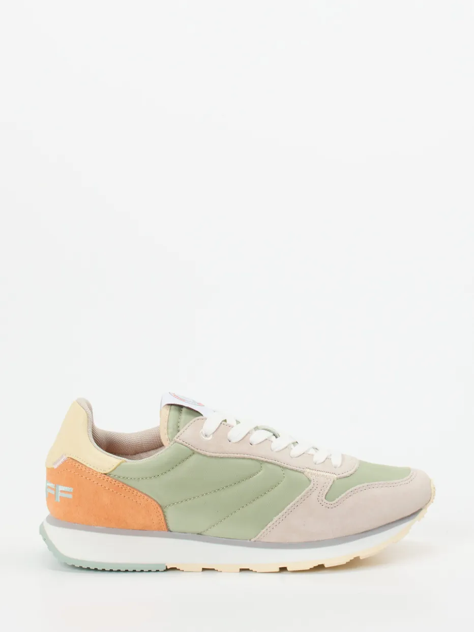 THE HOFF BRAND bringt mit diesem Sneaker frischen Wind in die Retro-Running-Szene. Die auffallende, aber dennoch harmonische Farbkomposition in Salbeigrün, Vanillebeige und Lavendel passt perfekt zur laufstarken Silhouette.