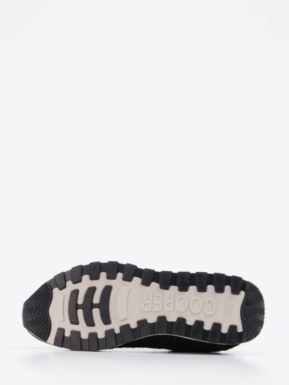 Glanzvolle Details im Streetstyle-Design.Candice Cooper zeigt mit diesem Damen-Sneaker eine elegante Interpretation des Retro-Looks. Ob beim City-Bummel oder zum abendlichen Ausgehen: Der Materialmix aus samtig angeschliffenem Veloursleder und glitzerndem Textil mit Paillettenbesatz sorgt für einen hochwertigen Auftritt. Schwarz dominiert die klassische Running-Silhouette, aufgelockert durch goldfarbene Marken-Highlights und eine strukturierte Gummisohle mit Kontrastverlauf. Die Schnürung mit Metallösen unterstreicht den sportiven Charakter, während der Glam-Effekt echtes Stilbewusstsein zeigt. Perfekt kombiniert mit Metallic-Accessoires oder schmalen Jeans. Ein ausdrucksstarker Sneaker mit luxuriösem Finish für trendorientierte Styles.