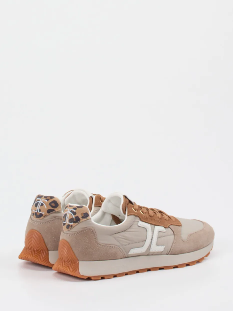 Retro-Flair in modernem Naturton.Candice Cooper interpretiert den Sneaker in einer Kombination aus Retro Runner und Streetwear neu. Ideal für urbane Freizeit-Outfits bietet dieses Modell ein Obermaterial aus Veloursleder, samtig angeschliffen, und leichtem Nylon. Die dominierenden Beige- und Cognacnuancen, ergänzt durch goldfarbene Ösen und ein Animal-Detail an der Ferse, kreieren einen naturinspirierten Look mit modischem Twist. Flach und schmal geschnitten, mit gepolstertem Einstieg und seitlicher Logo-Applikation, ist der Schuh zugleich komfortabel und stilbewusst. Perfekt zu entspannten Casual-Kombis mit Canvas-Cap oder Crossbody-Bag. Ein stilvoller Sneaker mit trendbewusster Retro-Silhouette im Unisex-Design.