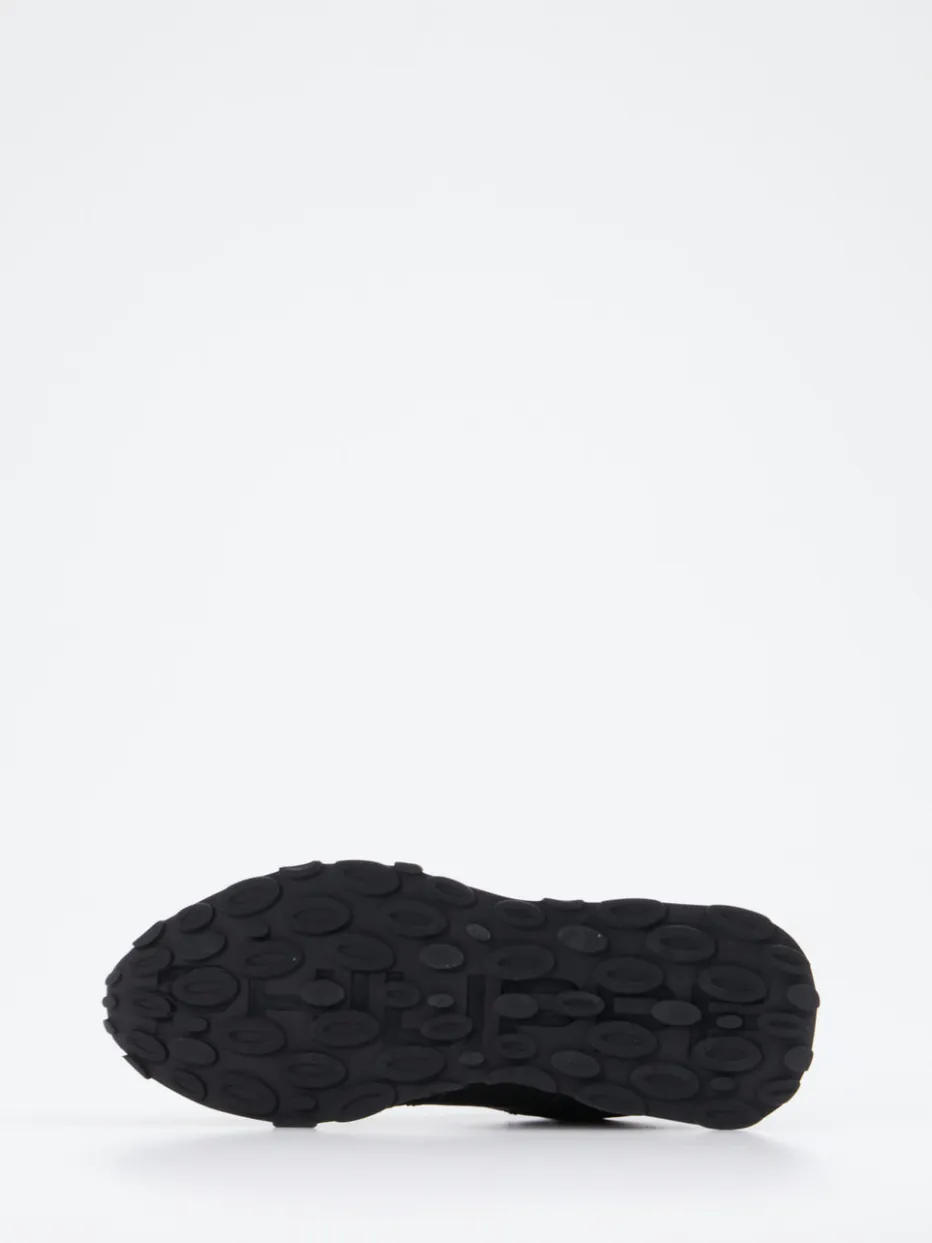 Designklassiker für stilvolle Alltagsszenen.Philippe Model präsentiert mit diesem Sneaker ein sportlich-elegantes Modell für Freizeit und urbane Momente. Der hochwertige Mix aus schwarzem Veloursleder, samtig angeschliffen, strukturiertem Nylon und Akzenten aus Glattleder verleiht dem Schuh eine markante, matte Optik. Tonale Ziernähte sowie Logo-Details an Ferse und Lasche unterstreichen den ruhigen „Quiet Luxury“-Charakter. Die profilierte Gummisohle mit markantem Saugnapf-Design sorgt für sicheren Halt und Retro-Charme. Kombiniert mit Steppjacke und Jogpants ein modernes Statement. Markentypischer Komfort trifft Vintage-Stil – Philippe Model vereint beides gekonnt.
