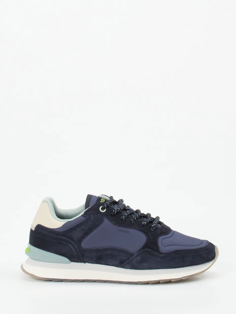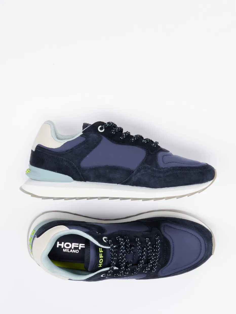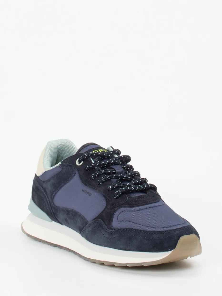 Retro trifft City-Vibes mit Stil.Der Retro-Sneaker von The Hoff Brand vereint nostalgische Running-Silhouette mit urbaner Raffinesse. Ideal für entspannte City-Tage: Aus blauem Veloursleder und tonigem Nylon gefertigt, bringt das Modell dank reflektierender Schnürsenkel, transluzenter „Milano“-Laufsohle mit Print und gepolstertem Schaftrand stylische Details auf den Punkt. Die klassische flache Form sorgt für ein komfortables Tragegefühl im Freizeit-Alltag. Typische Streetwear-Einflüsse und Farbakzente in Cremeweiß und Mintgrün ergänzen den Look gekonnt. Kombiniert zu Jeans und Cap ergibt sich ein harmonisches Outfit für trendbewusste Tage. Markenqualität mit retroinspiriertem Anspruch für stilvolle Lässigkeit.