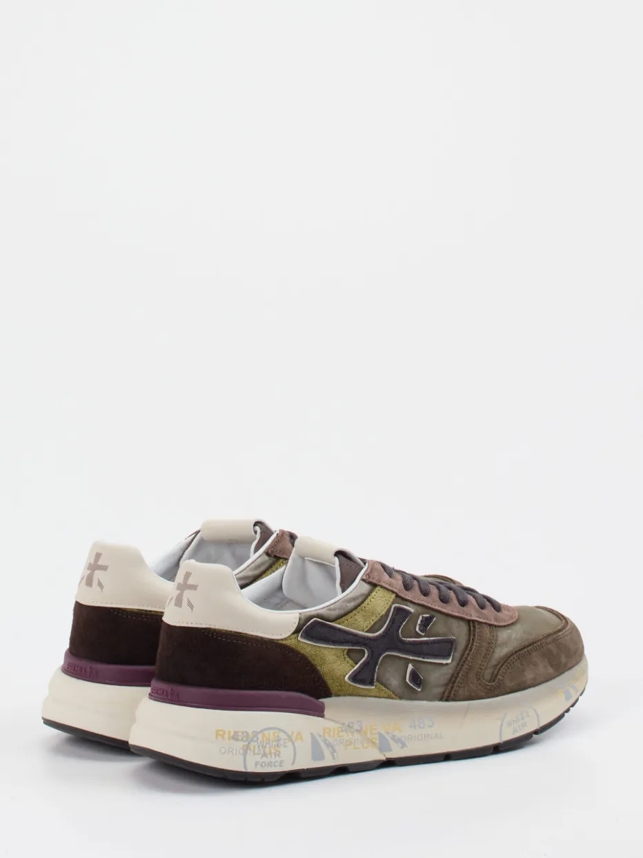 Statement-Sneaker im Materialkontrast.Premiata präsentiert mit diesem Herren-Sneaker aus der Kategorie Retro Runner ein authentisches Streetwear-Modell mit Stil und Komfort. Ideal für urbane Freizeitlooks und entspannte Alltagsmomente überzeugt das Design durch olivgrünes Veloursleder mit genarbter Oberfläche, kombiniert mit strukturiertem Textil. Die klassische, flache Silhouette trifft auf eine mehrfarbige Gummisohle mit dynamischen Printdetails. Kontrastierende Logo-Applikationen und eine verstärkte Ferse setzen markante Akzente im 90s-Style. Eine gepolsterte Schaftpartie gewährleistet angenehmen Tragekomfort. Gut kombinierbar mit Jogpants oder Oversized Hoodies. Ein Premium-Sneaker für trendbewusste Looks mit Komfortanspruch.