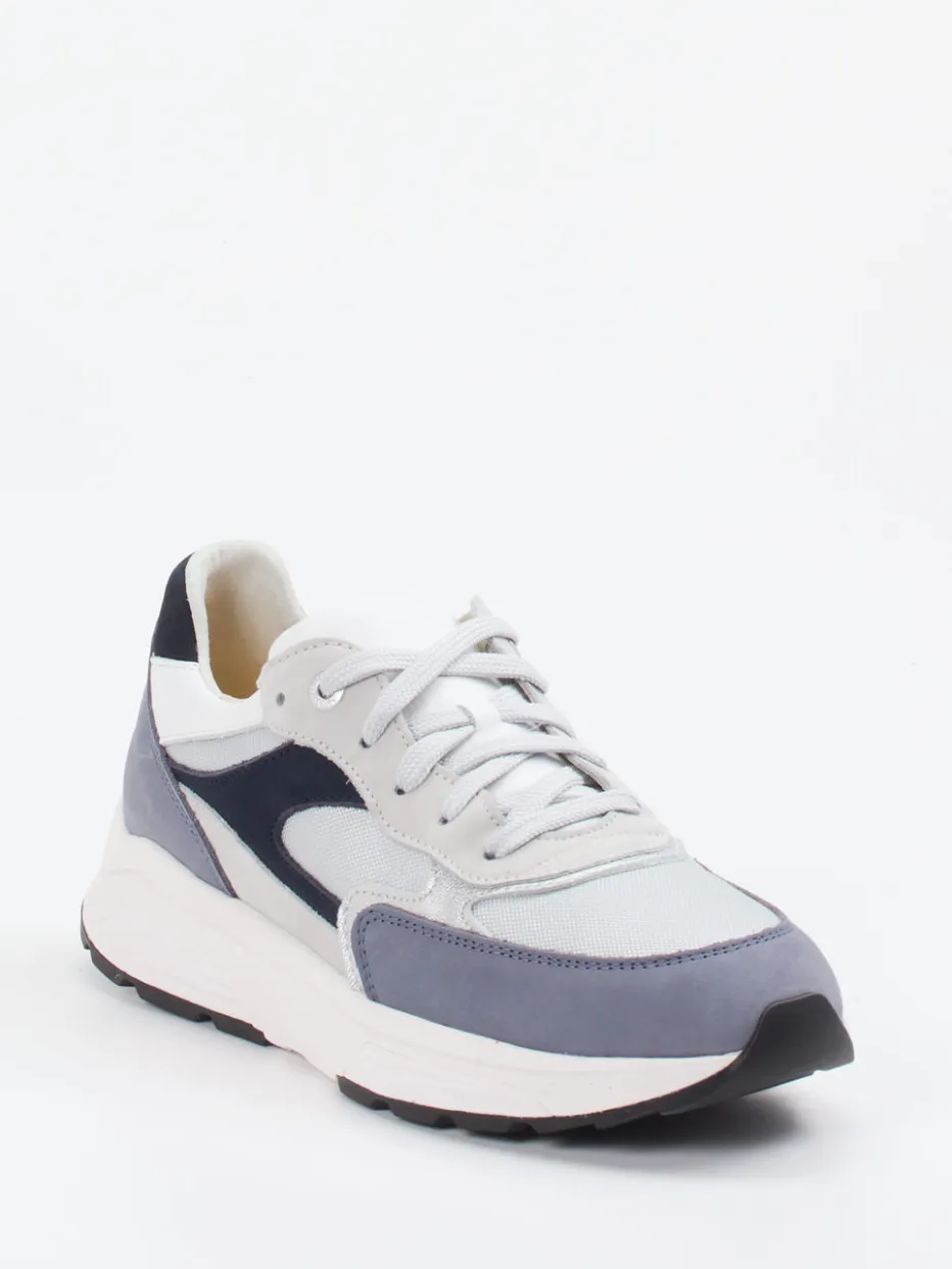 Streetstyle trifft Komfort.XSENSIBLE bietet mit diesem Sneaker einen vielseitigen Begleiter für Alltag und Freizeit. Ob beim Stadtbummel oder auf dem Weg ins Fitnessstudio – der Retro-Runner überzeugt mit funktionalem Veloursleder und atmungsaktivem Mesh. Das Innenfutter aus Stretchleder schmiegt sich sanft an, während die klassische Schnürung sicheren Halt bietet. Farblich kombinieren sich Hellgrau, Mittelgrau und Dunkelblau im stylischen Colorblocking-Look. Eine profilierte Gummisohle mit Balance-Technologie inspiriert von japanischen Holzslippern unterstützt die Körperhaltung. Ideal zu Jogpants oder Cargo-Shorts – ein urbaner Statement-Sneaker mit ergonomischem Anspruch.