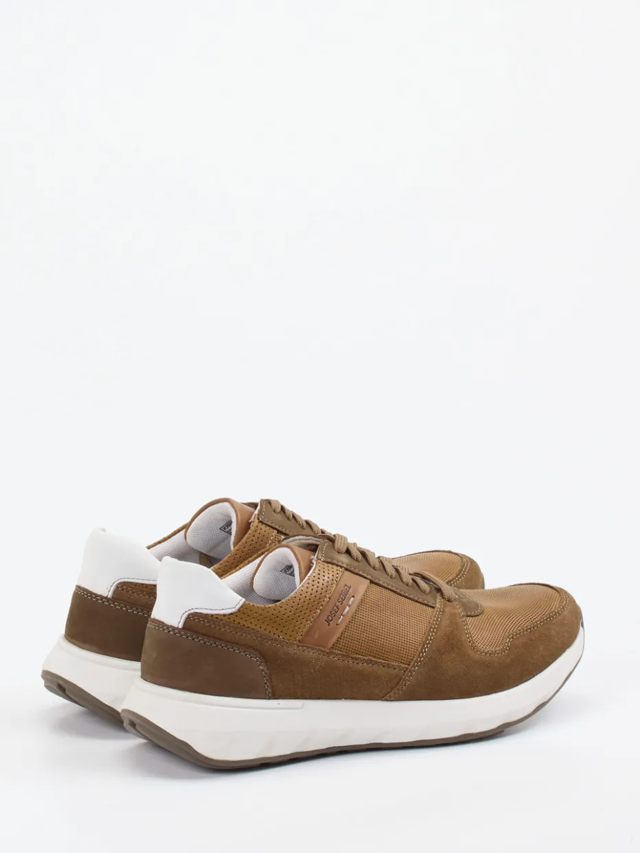 Sportiver Komfort in modernem Braun.Josef Seibel präsentiert mit diesem Herren-Sneaker einen stilvollen Allrounder für Alltag und Freizeit. Für ganztägigen Komfort bei urbanen Wegen oder entspannten Wochenenden sorgt das Obermaterial aus Veloursleder, ergänzt durch feines Kalbleder mit perforierten Details. Das atmungsaktive Textilfutter, der gepolsterte Einstieg sowie die profilierte Gummisohle bieten ein rundum angenehmes Tragegefühl. In Mittelbraun gehalten, zeigt der Sneaker eine klassisch-sportliche Silhouette mit markanter Schnürung und dezent geprägtem Logo an der Seite. Streetwear-Einflüsse und funktionale Akzente machen ihn ideal für kombinierfreudige Casual-Outfits. Der verlässlich bequeme Schuh mit Stilkompetenz aus dem Haus Josef Seibel.