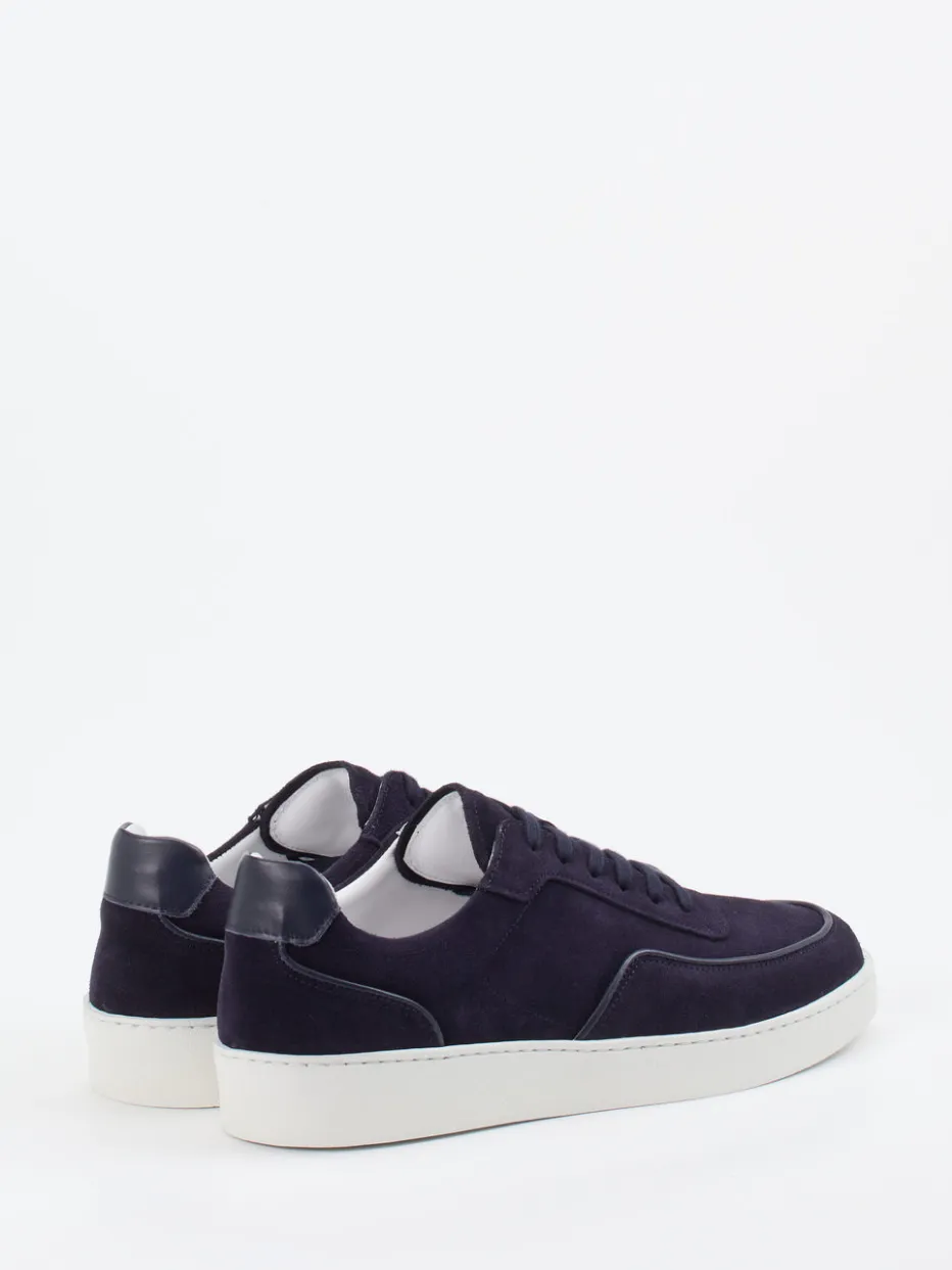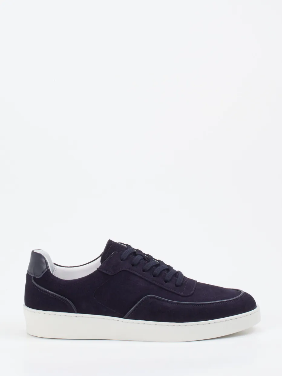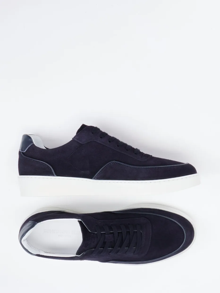 Minimalistischer Look mit Retro-Akzent.Konstantin Starke präsentiert mit diesem Low-Top-Sneaker einen stilvollen Begleiter für Freizeit und Büro. Das samtig angeschliffene Veloursleder in tiefem Blau trifft auf eine klare, flach geschnittene Silhouette. Tonale Schnürsenkel und die kontrastierende weiße Gummisohle betonen den harmonischen Materialmix aus Velours- und Glattleder. Ein gepolsterter Fersenbereich sowie ein herausnehmbares Komfortfußbett unterstreichen die Funktionalität. Inspiriert von Streetwear und dem Trend „Quiet Luxury“, lässt sich der Sneaker vielseitig zu Chinohose oder Poloshirt kombinieren. Ein stilistisch ausbalancierter Herrenschuh mit Understatement für moderne City-Outfits.
