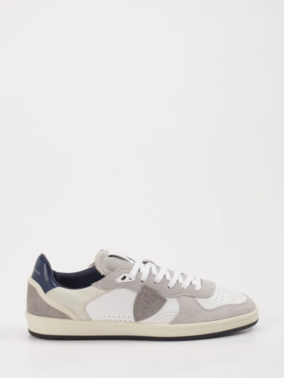 Minimalismus trifft Retro-Charme. Philippe Model präsentiert mit diesem Sneaker ein unisex Low-Top-Modell für entspannte Alltagslooks. Die Kombination aus glattem und velourigem Leder sorgt für eine hochwertige Haptik und ein stilvolles Erscheinungsbild. Hellgrau dominiert die klassisch flache Silhouette, akzentuiert durch weiße und dunkelblaue Details. Dezente Highlights wie die perforierte Zehenbox, tonige Nähte und das seitliche Logo-Patch unterstreichen den puristischen Streetwear-Charakter. Gummisohle mit Fischgrät-Profil ergänzt das komfortable Tragegefühl ebenso wie der gepolsterte Schaftrand. Passt ideal zu minimalistischen Outfits – etwa mit weißen Tennissocken und Overshirt. Ein Philippe Model Klassiker mit zeitloser Designnote.