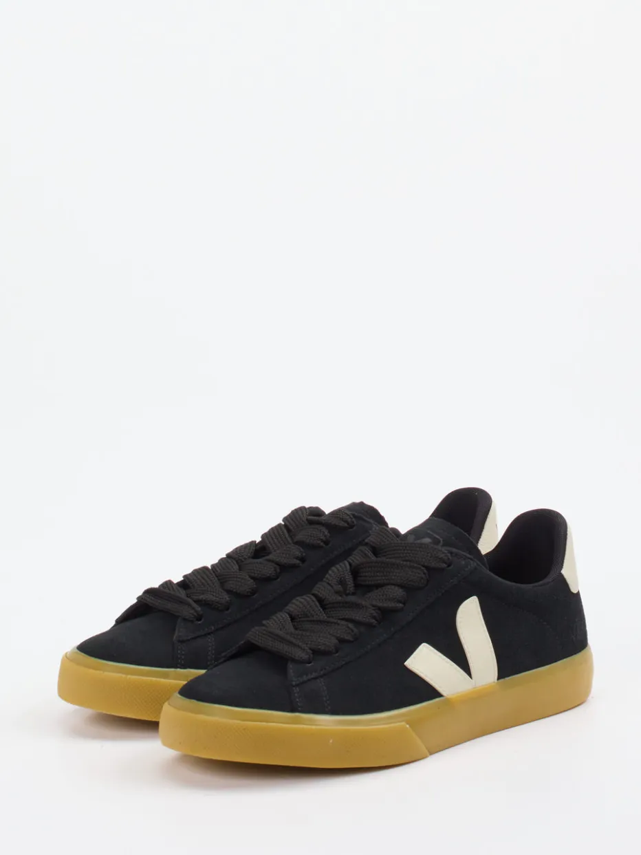 Designklassiker mit Umweltbewusstsein.VEJA präsentiert einen modernen Unisex-Sneaker in schlichter Low-Top-Silhouette. Ideal für urbane Freizeitlooks, verbindet dieses Modell klassisches Design mit zeitgemäßer Nachhaltigkeit. Gefertigt aus schwarzem Veloursleder mit samtiger Oberfläche, bietet er dank farblich kontrastierender Gummisohle in Honiggelb sowie einem cremefarbenen V-Logo dezenten Retro-Charme. Die verstärkte Ferse und das atmungsaktive Textilfutter sorgen für zusätzlichen Komfort. Als Teil der Trendbewegung „Sustainable Basics“ eignet er sich besonders für modebewusste Menschen mit Sinn für langlebige Styles. Kombiniert mit Canvas-Rucksack und Basic-Tee entsteht mühelos ein stimmiger Look. VEJA steht für stylische Verantwortung in unverwechselbarer Form.