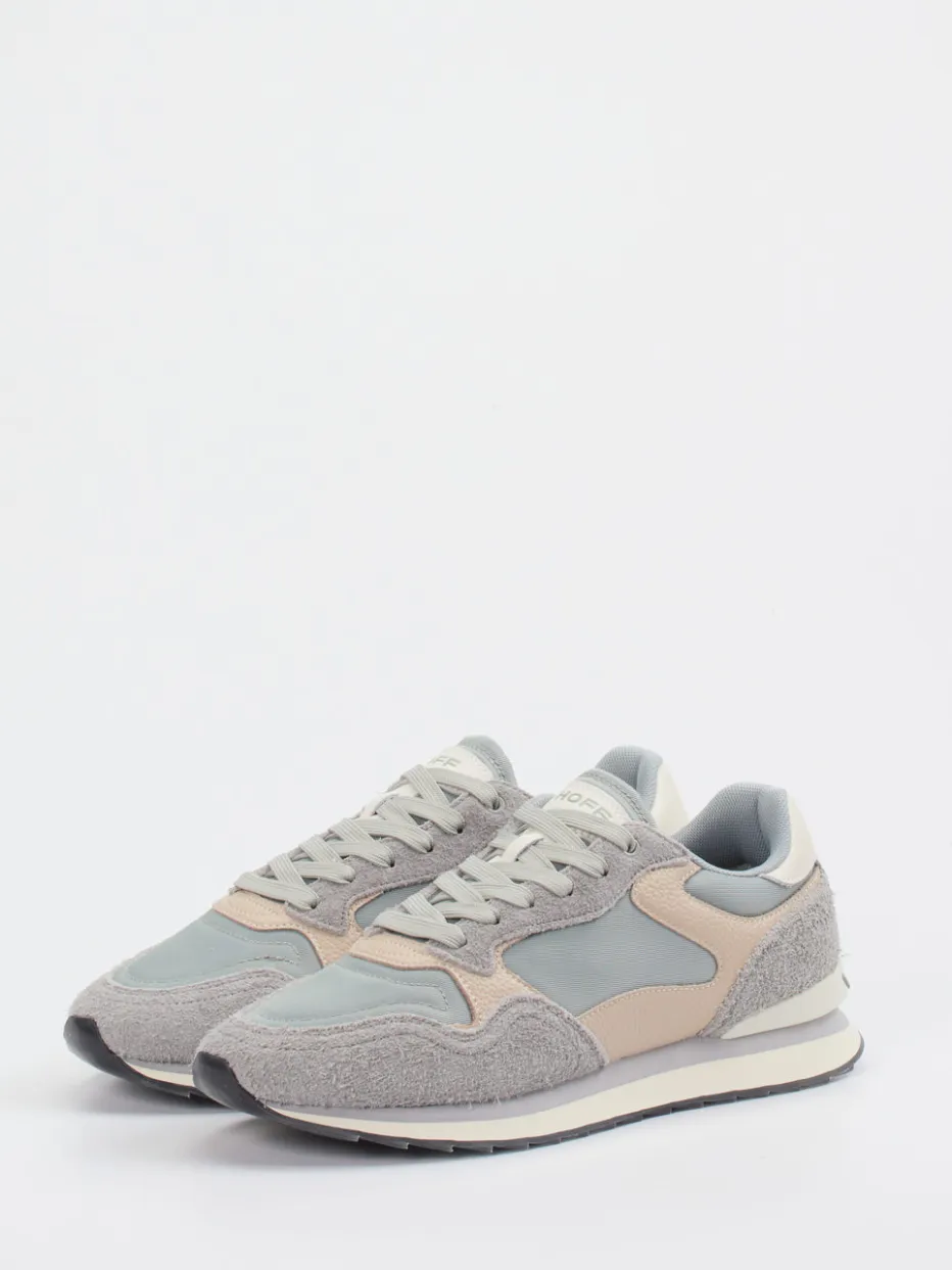 Retro-Silhouette trifft urbanes Detail.THE HOFF BRAND präsentiert mit diesem Herren-Sneaker einen stilvollen Retro Runner für Freizeit und Reise. Ideal für entspannte Alltagsmomente in der Stadt: Der Materialmix aus Veloursleder, strukturiertem Mesh und glattem Kunstleder überzeugt optisch wie funktional. Dezente Töne in Hellgrau und Beige unterstreichen die klassische, flach gehaltene Silhouette. Auffällig: die transparente Gummisohle mit detailliertem Stadtplan-Print von Düsseldorf – ein markantes Statement für Individualität. Gepolsterter Schaft und Schnürung ergänzen den sportiven Tragekomfort. Ein Modell, das aktuelle Streetwear-Stile mit einem klaren Retro-Charakter vereint. Ein charakterstarker Begleiter für urban geprägte Looks mit subtiler Raffinesse.