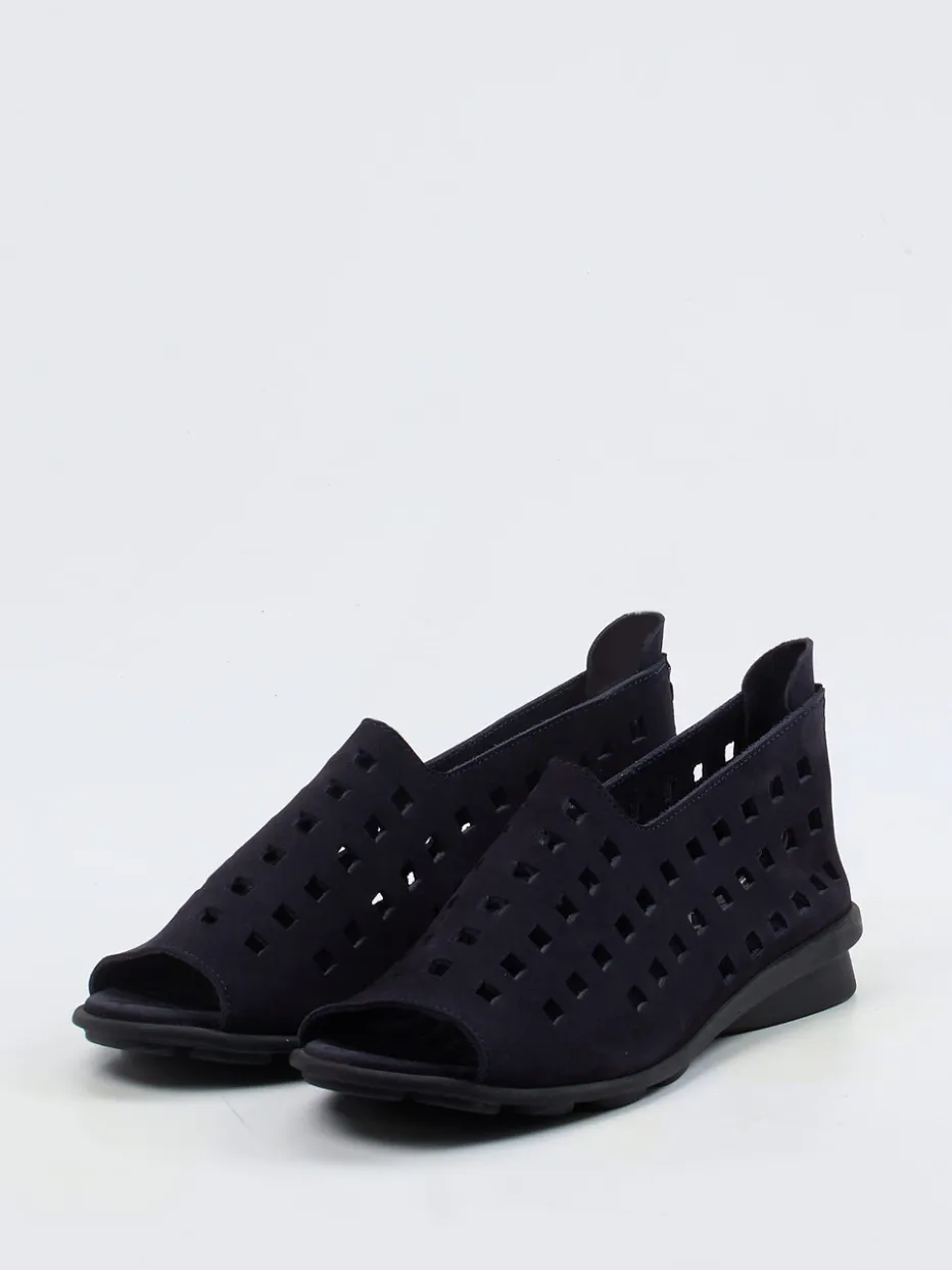 Diese sportliche, hoch angeschnittene Sandale der Marke Arche ist ein bequemer Begleiter an warmen Sommertagen. Das tief dunkelblaue Nubukleder ist besonders weich und anschmiegsam gearbeitet. Der geometrische Laser-Cut unterstreicht den sportiv-femininen Look. Der Reißverschluss an der Ferse ist schmückend und funktional zugleich. Die markentypische Naturlatexsohle in Schwarz ist superflexibel und soft gepolstert.