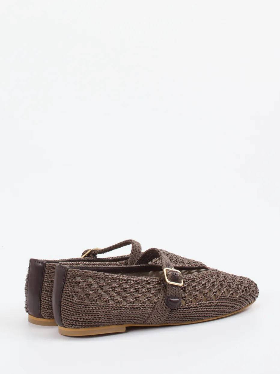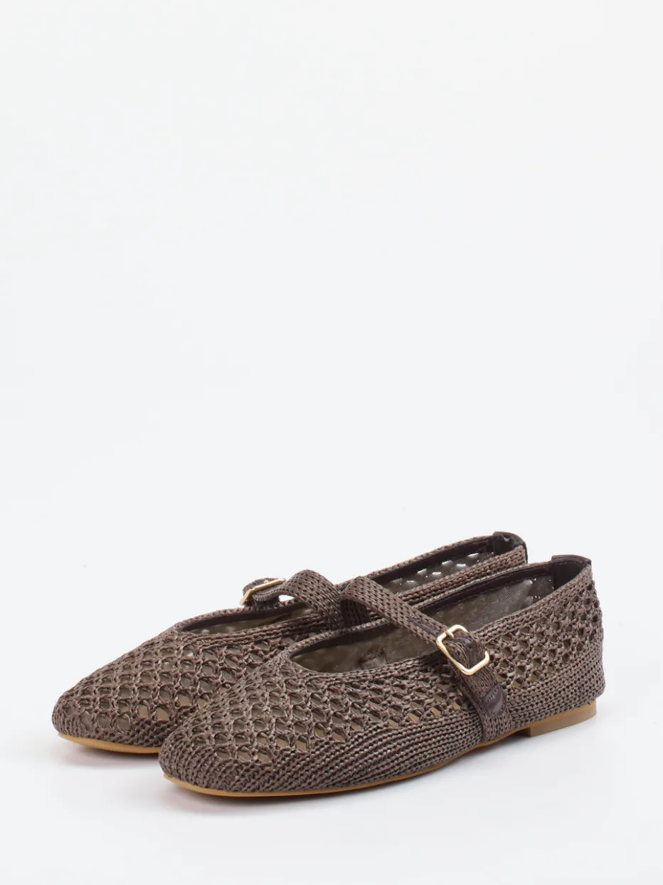 Feine Struktur für leichte Sommertage.Andrea Sabatini präsentiert luftige Damen-Spangenpumps in klassischer Mary-Jane-Silhouette. Ideal für Freizeit und Urlaub bieten die flach zulaufenden Ballerinas mit 1 cm Absatz angenehmen Tragekomfort bei sommerlicher Leichtigkeit. Gefertigt aus braunem Flechtleder mit matter Oberfläche, unterstreicht die goldfarbene Schnalle den Retro-Charme. Die detaillierte Webstruktur verleiht dem Design handwerklichen Ausdruck und folgt dem „Natural Textures“-Trend der Saison. Für mehr Flexibilität sorgt eine dünne, profilierte Gummisohle, die ein leichtes Barfußgefühl erzeugt. Stylingtipp: perfekt zu Leinenkleidern und Strohtaschen. Sommerlicher Chic mit natürlichem Komfort – typisch Andrea Sabatini.
