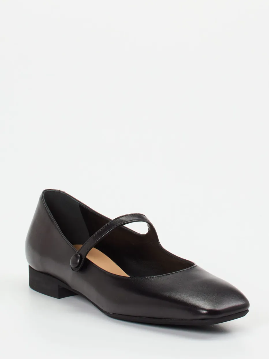 Für gepflegte Office-Looks oder stilvolle Alltagskombinationen bietet dieses Modell aus hochwertigem Lammleder mit glänzender Oberfläche eine gelungene Mischung aus Komfort und Design. Der klassisch flache Schnitt mit Riemchen und dezentem 2-cm-Absatz vermittelt feminine Eleganz mit einem Hauch 90er-Retro. Die schwarze Farbgebung unterstreicht den minimalistischen Stil, während fein gesetzte Nähte und ein Ton-in-Ton Knopfverschluss für eine ruhige Linienführung sorgen. Passend zum „Quiet Luxury“-Trend bietet der Schuh vielseitige Stylingmöglichkeiten – von Businesshose bis zur Strumpfhose mit Rock.