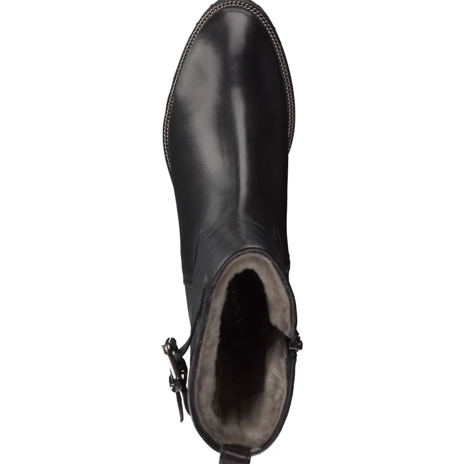Winterkomfort in stilvoller Silhouette.Die Marke Mannori präsentiert klassische Damen-Stiefel in eleganter Mid-Calf-Höhe. Ideal für frostige Tage bieten sie mit ihrem echten Lammfellfutter wohlige Wärme im Alltag. Das schwarze Lammleder zeigt sich glänzend veredelt mit einer attraktiven Steppstruktur. Ein silberfarbener Zierriemen mit Metallschnalle setzt einen luxuriösen Akzent, ergänzt durch eine robuste Porosohle mit leichter Profilierung. Der seitliche Reißverschluss erleichtert das An- und Ausziehen. Inspiriert vom Quiet-Luxury-Trend wirkt das geradlinige Design zugleich modern und zeitlos. Besonders harmonisch kombinierbar mit Steppjacken und Lederaccessoires. Ein hochwertiger Begleiter mit Fokus auf Funktionalität und dezenten Luxus.