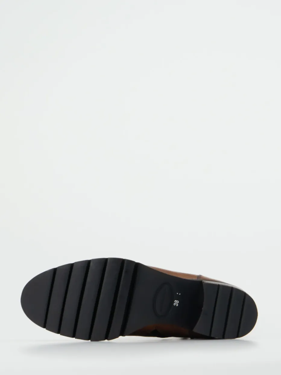 Für stilvolle Auftritte bei jedem Wetter.Konstantin Starke Stiefelette für Damen. Ob im Büro oder im Alltag – diese cognacbraune Mid-Calf-Stiefelette vereint eleganten Minimalismus mit funktionalem Komfort. Gefertigt aus weichem Känguruleder mit edlem Glanz und tonigen Nähten, besticht das Modell durch die schnörkellose, gerade Schaftform und einen praktischen Reißverschluss an der Seite. Die dunkelbraune Profilsohle aus Leichtzell sorgt für Bodenhaftung und modischen Chunky-Charakter. Raffinierte Vintage-Details und die kräftige Farbe verleihen dem Schuh einen markanten Look für trendbewusste Kombinationen mit Röcken oder schmalen Stoffhosen. Premium-Komfort und dezenter Stil – typisch Konstantin Starke.