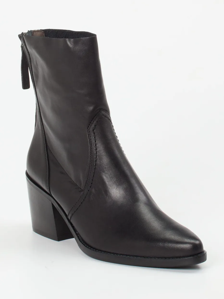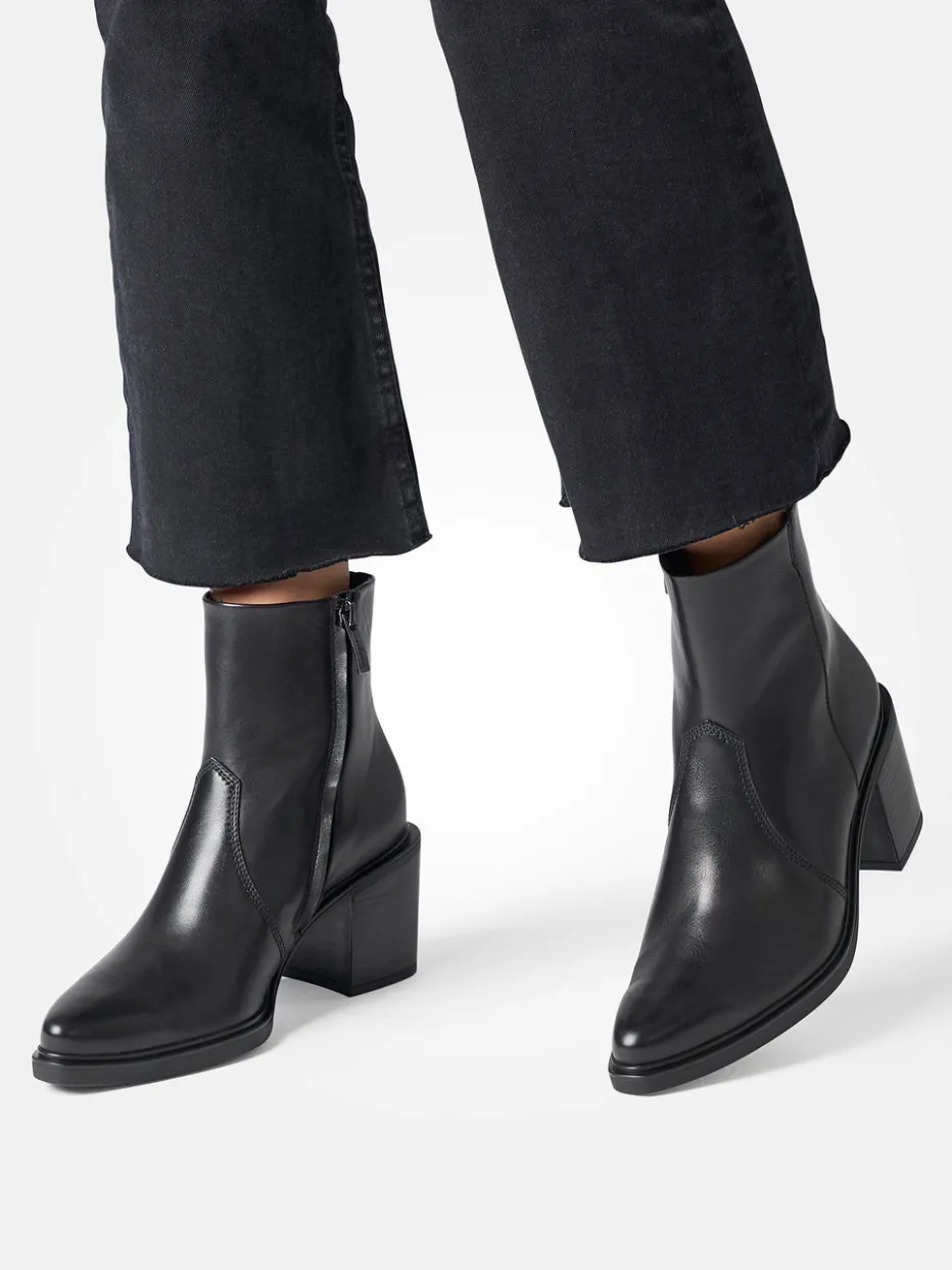 Diese minimalistische Ankle Boot überzeugt mit butterweichem Kalbleder, subtilen Designakzenten und einem femininen Blockabsatz – ideal für stilbewusste City-Looks.