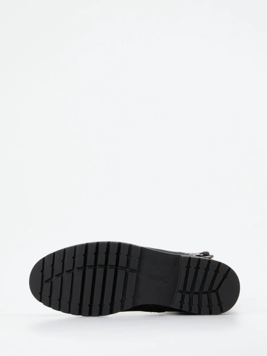 Kompakter Komfort für kalte Tage.Die Marke Gabor Comfort präsentiert eine moderne Damen-Stiefelette mit funktionellem Charakter. Ideal für winterliche Stadtgänge: Das schwarze Kalbleder überzeugt durch seine matte Oberfläche und angenehme Anschmiegsamkeit. Ein warmes Kunstfell-Futter sowie die H-Weite sorgen für hohen Tragekomfort, während die robuste Gummisohle rutschfesten Halt gibt. Der seitliche Reißverschluss erleichtert das Anziehen, eine dunkelsilberne Metallschnalle setzt einen dezenten Akzent. Die gerade Schaftform und die minimalistische Silhouette passen zum Quiet Luxury-Trend und machen das Modell vielseitig kombinierbar – etwa zu Thermo-Leggings und Wollmantel. Zeitloses Design trifft auf bewährten Gabor-Komfort.
