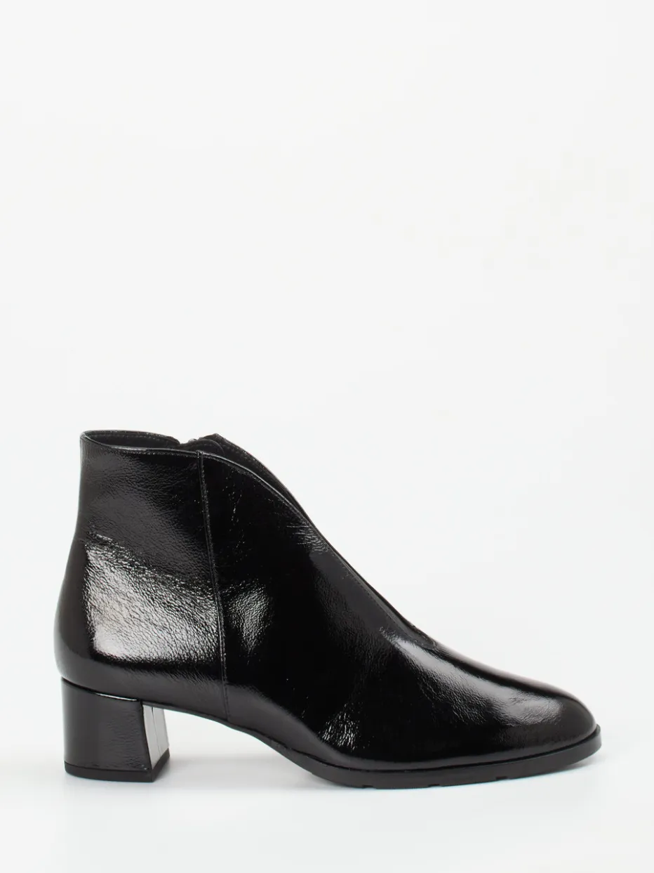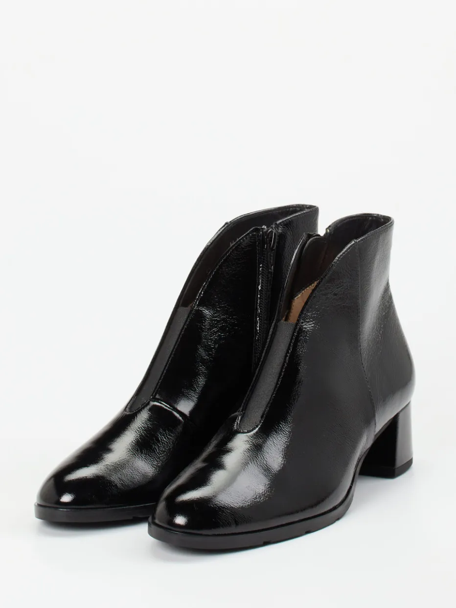 Ob fürs Büro oder den Stadtbummel – das Modell vereint Funktionalität mit zeitloser Eleganz. Schwarzes Lackleder mit glänzender Oberfläche verleiht dem klassischen, knöchelhohen Schnitt Raffinesse. Details wie ein Ton-in-Ton-Reißverschluss, glatte Nahtführung sowie ein Blockabsatz unterstreichen den stilvollen Auftritt. Weiches Lammlederfutter, ein Elasteinsatz zur Weitenanpassung und das gepolsterte Wechselfußbett sorgen für Tragekomfort auf höchstem Niveau. Der Look greift Trendthemen wie „Quiet Luxury“ und „Glossy Surfaces“ gekonnt auf und ergänzt klassische wie modische Outfits.