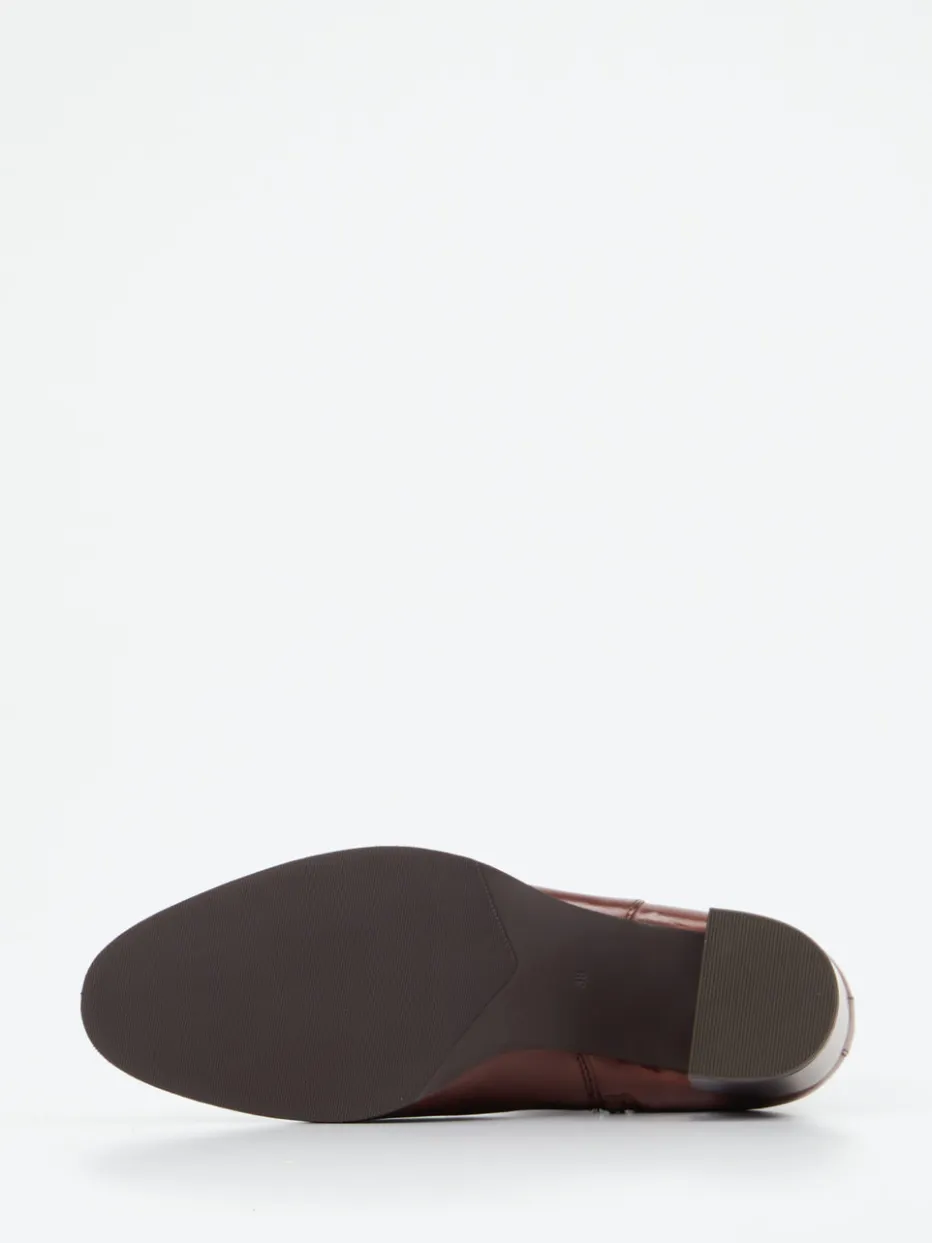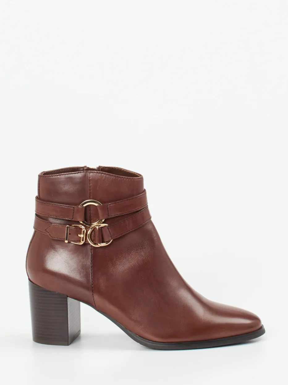 Für den stilbewussten Alltag im Herbst überzeugt das Modell durch mittelbraunes, glänzendes Lammleder in Kombination mit einem femininen Blockabsatz und goldfarbener Riemen-Schnalle. Die knöchelhohe Silhouette mit funktionalem Reißverschluss bietet zuverlässigen Komfort, während das mikrofasergefütterte Innere angenehm wärmt. Ihre klare Linienführung und hochwertigen Materialien verbinden das Beste aus Modern Classic und Quiet Luxury. Optimal kombinierbar zu Wollstoffen oder modernen Büro-Looks.