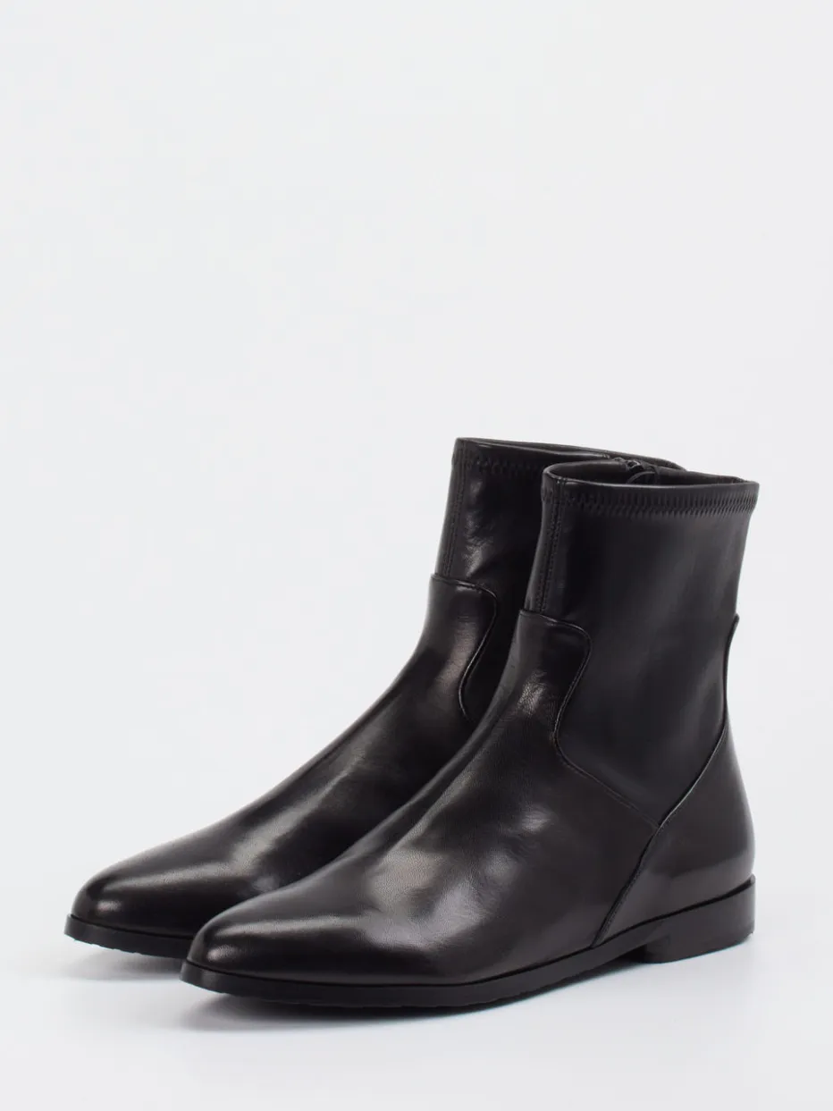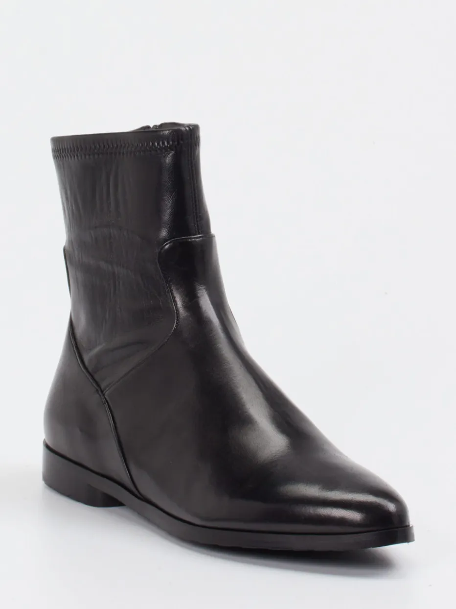Eleganz im Zeichen zeitloser Stärke.Die Marke Truman’s präsentiert mit dieser Damen-Stiefelette ein Modell für stilvolle Auftritte. Feine Linienführung trifft auf glänzend verarbeitetes Lammleder in klassischem Schwarz. Der schlanke, spitz zulaufende Schnitt und ein verdeckt gearbeiteter Reißverschluss unterstreichen den minimalistischen Ansatz, während der elastische Schaftrand für zusätzlichen Komfort sorgt. Glatte Gummisohlen und ein dezenter Absatz von 1 cm machen den Schuh besonders alltagstauglich – ganz im Sinne des „Quiet Luxury“-Trends. Perfekt kombinierbar mit Kaschmir-Mantel oder Ledertasche für einen geradlinigen Look. Ein stilvolles Essential für anspruchsvolle Garderoben mit Understatement-Charakter.