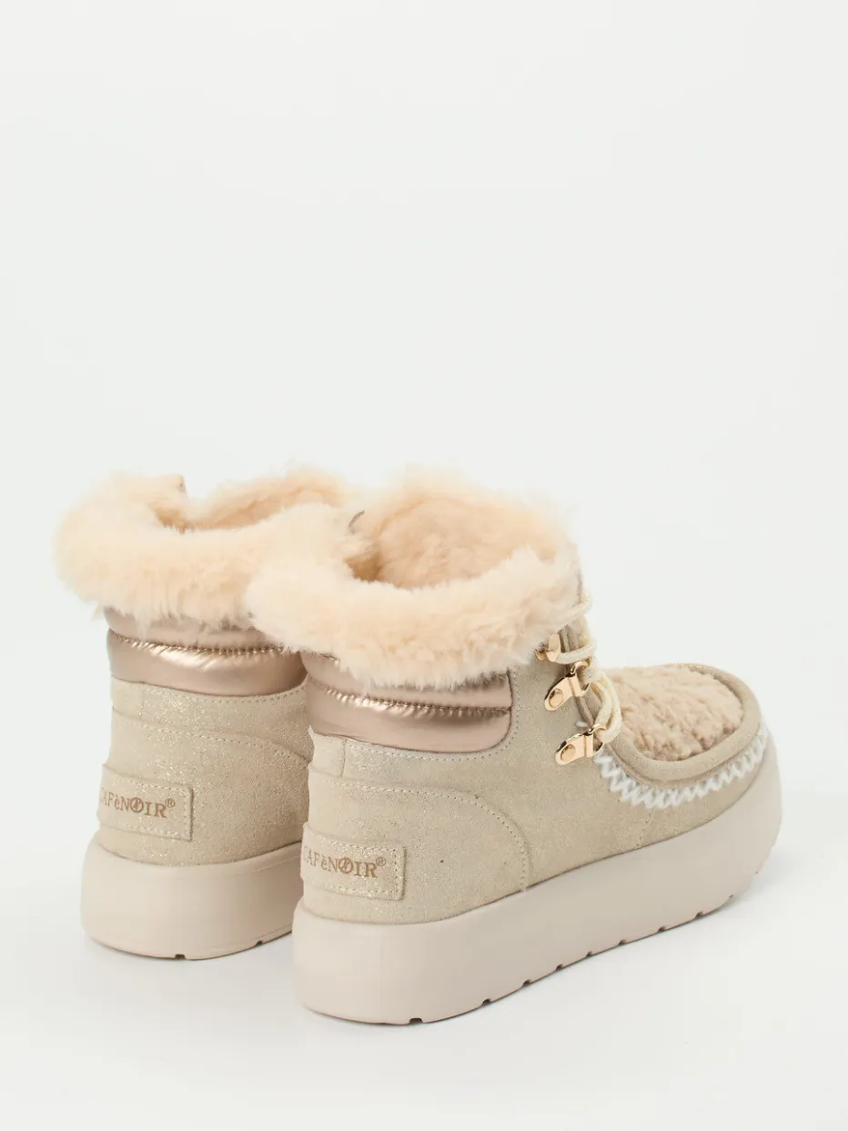 Flauschige Textilfütterung und goldene Details verleihen dieser Schnürstiefelette einen charmant-winterlichen Look. Ideal für stilbewusste Komfortliebhaberinnen an kalten Tagen.