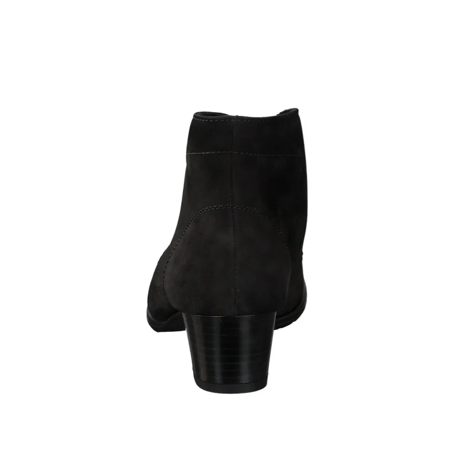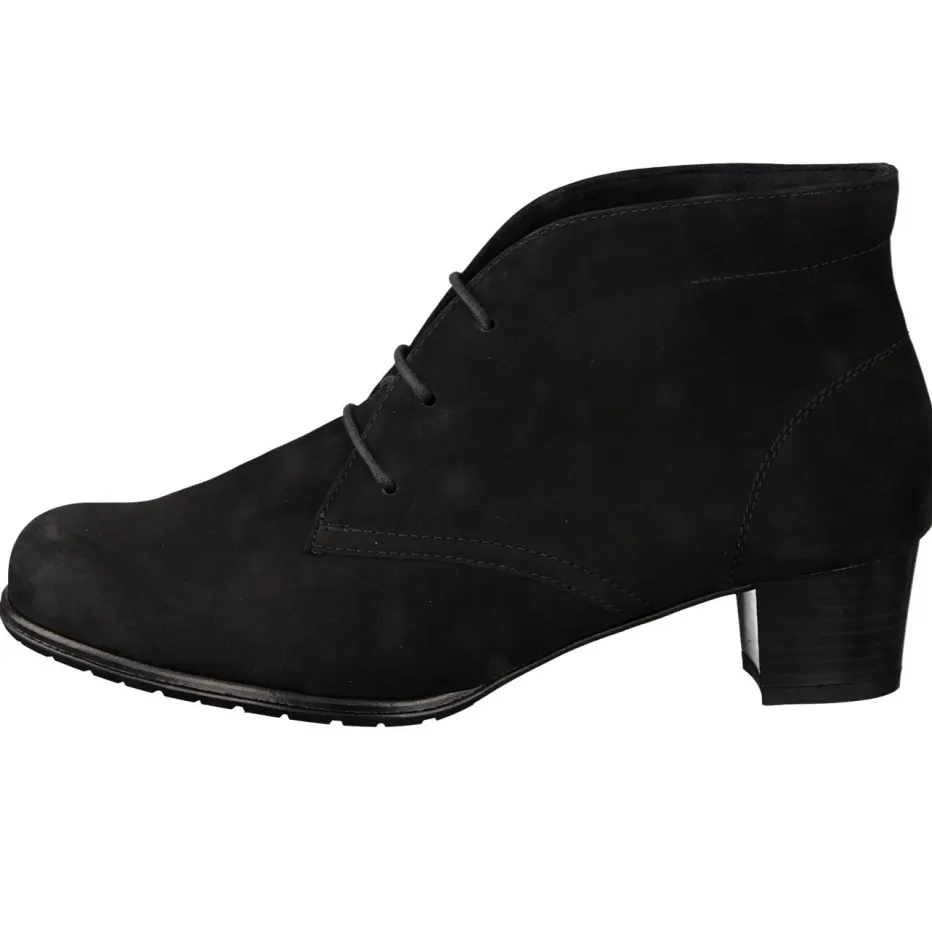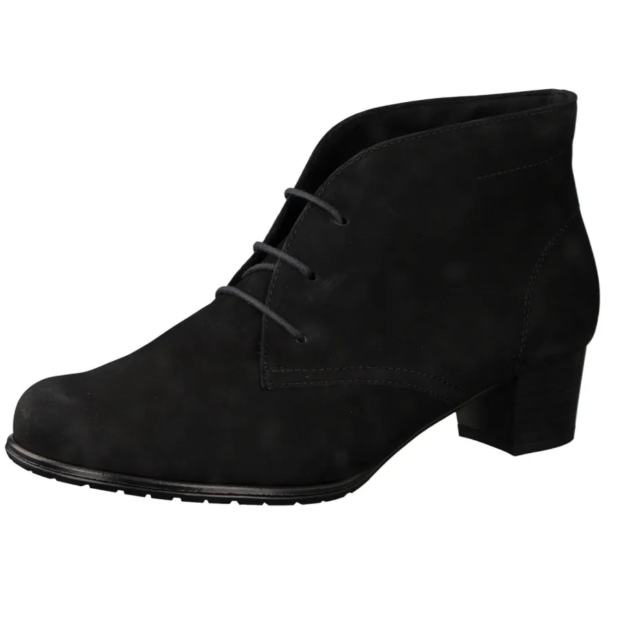 Dezenter Alltagsstil mit Komfort.Semler präsentiert eine knöchelhohe Stiefelette für Damen mit schlichtem Design und maximaler Funktion. Für den Arbeitstag im Büro oder Spaziergänge durch die Stadt empfiehlt sich diese schwarze Schnür-Stiefelette. Das samtig angeschliffene Nubukleder passt sich dem Fuß angenehm an, während die profilierte Gummisohle sicheren Halt bietet. Die Silhouette ist klar und klassisch, ergänzt durch eine passgenaue Schnürung und einen komfortablen Blockabsatz. Dezente Ton-in-Ton-Nähte und ein eingeprägtes Logo unterstreichen die zurückhaltende Ästhetik. Passt perfekt zu dunklen Stoffhosen oder minimalistischen Casual-Looks. Der ergonomisch geformte Leisten und das herausnehmbare Fußbett unterstreichen den anspruchsvollen Tragekomfort von Semler.