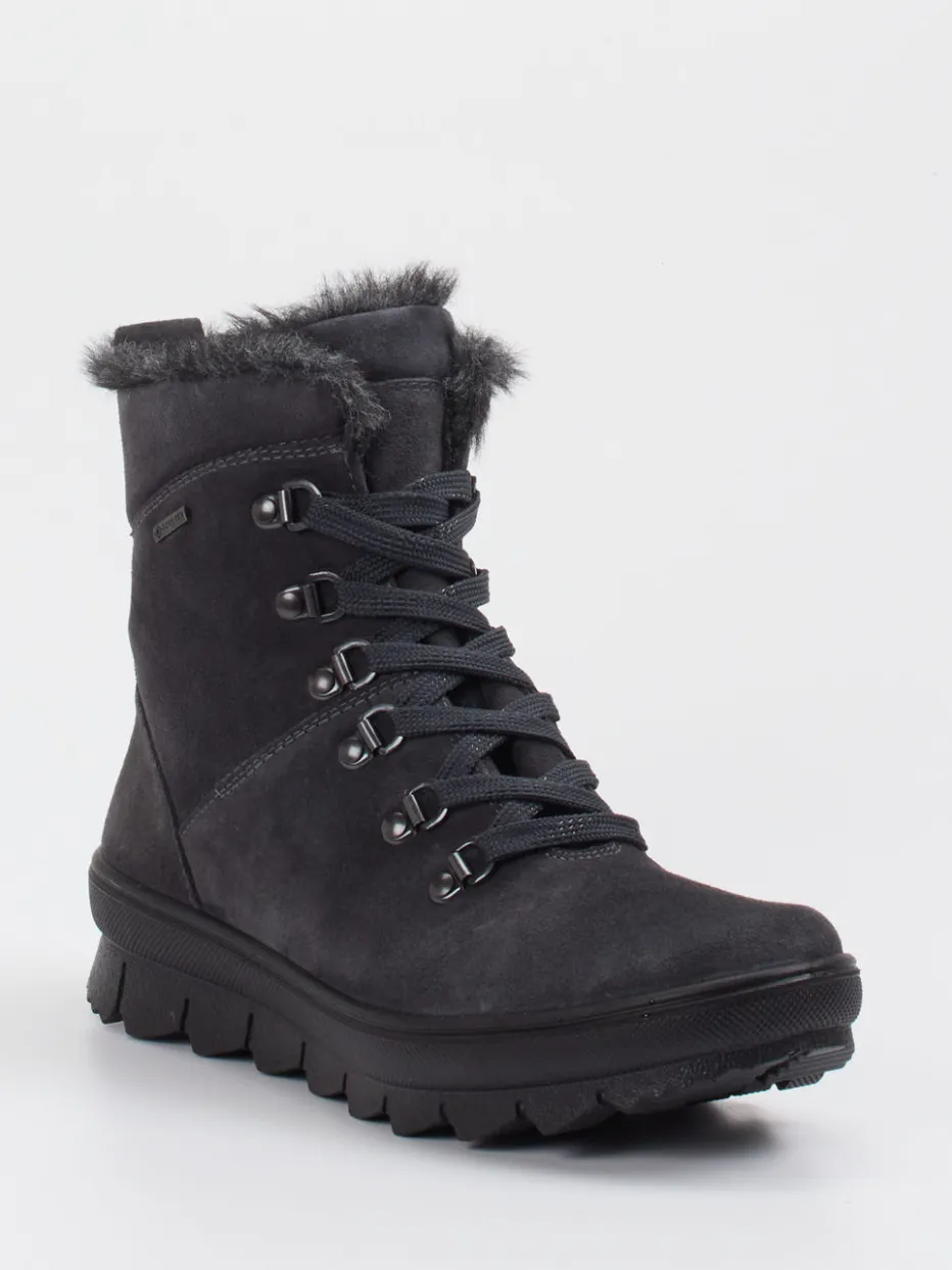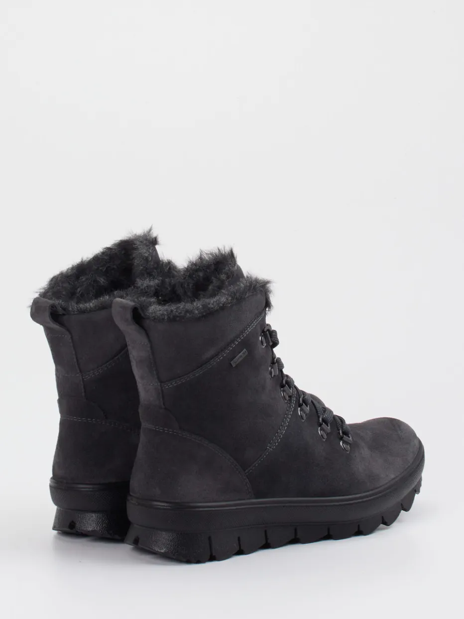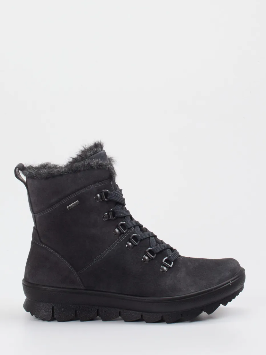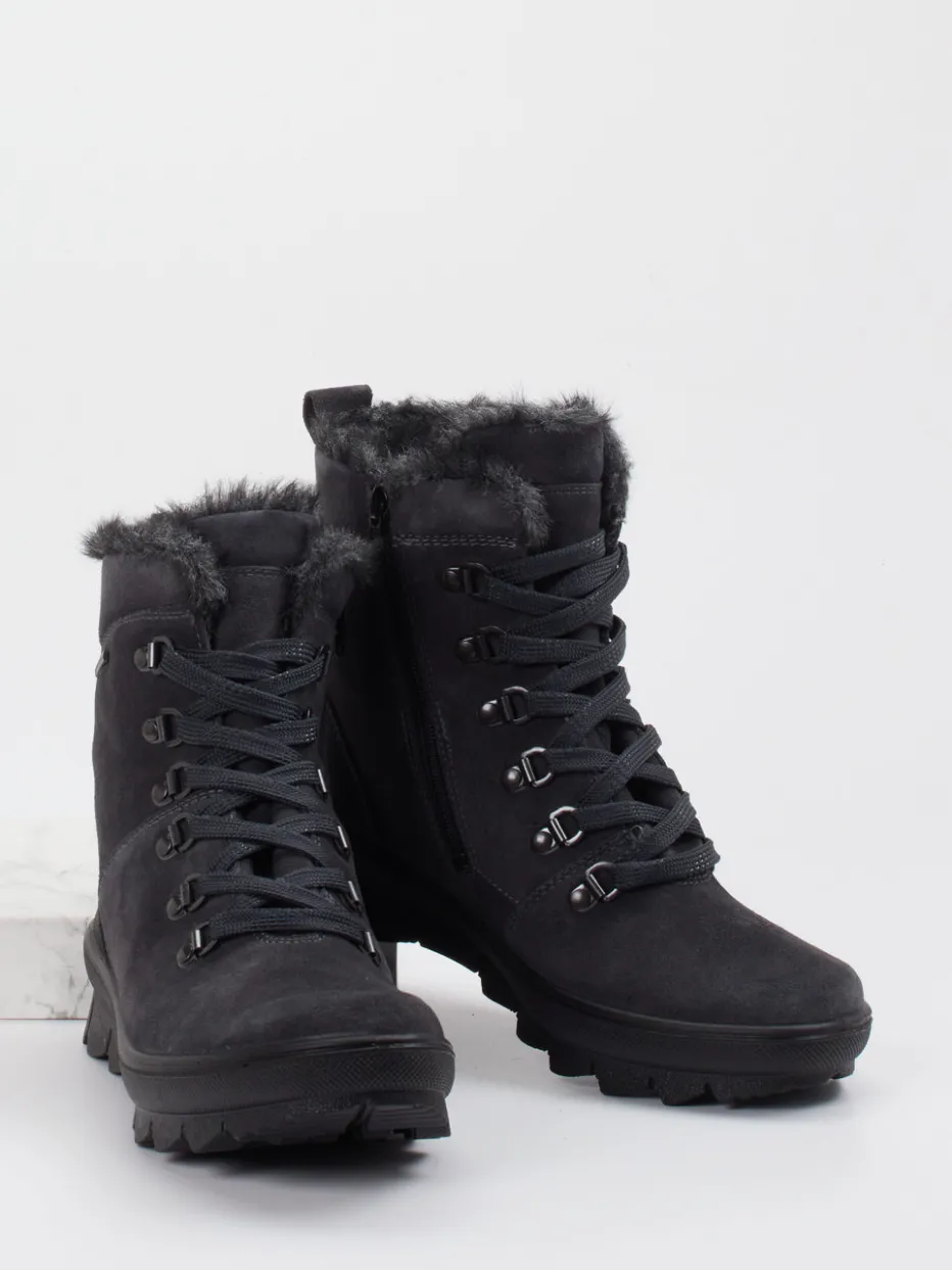 Outdoor-Komfort neu interpretiert.Legero präsentiert diese knöchelhohe Damen-Stiefelette für Herbst und Winter. Die Kombination aus anthrazitgrauem, matt strukturiertem Veloursleder und wind- sowie wasserdichtem Material macht sie zur robusten Begleiterin für wechselhaftes Wetter. Ihr warmes Futter aus veganem Kunstfell und das griffige Profil der PU-Sohle bieten Komfort und Trittsicherheit. Designmerkmale wie die schwarze Metallösen-Schnürung, der innenseitige Reißverschluss und tonale Ziernähte unterstreichen den funktionalen Minimalismus. Der Look passt zu Thermoleggings oder Parka und spricht einen casual-orientierten Stil an. Gut geschützt mit urbaner Schlichtheit – Legero bringt verlässlichen Outdoor-Charakter in den Alltag.