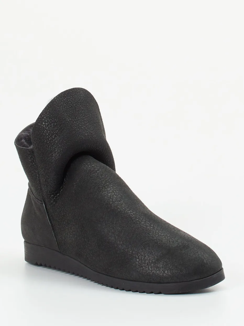 Minimalistisch durch Herbst und Winter.Die Marke Arche präsentiert mit dieser Stiefelette ein Damenmodell, das Komfort und klare Linien verbindet. Ideal für kalte Alltagssituationen oder entspannte Spaziergänge: Das schwarze Veloursleder mit samtig genarbter Oberfläche wird von einem wärmenden Innenfutter aus Lammfell ergänzt. Die minimalistisch-geschlossene Form mit asymmetrischem, offenkantigem Schaftabschluss unterstreicht die skandinavisch inspirierte Ästhetik. Dank ergonomischer Schlupfform entsteht ein besonders anschmiegsamer Sitz – ganz ohne Druckstellen. Die profilierte Gummisohle bietet Trittsicherheit auch bei Nässe. Harmoniert stilvoll mit Kaschmirleggings und Grobstrick. Markante Funktion trifft auf nordischen Komfortanspruch – im typischen Arche-Design.