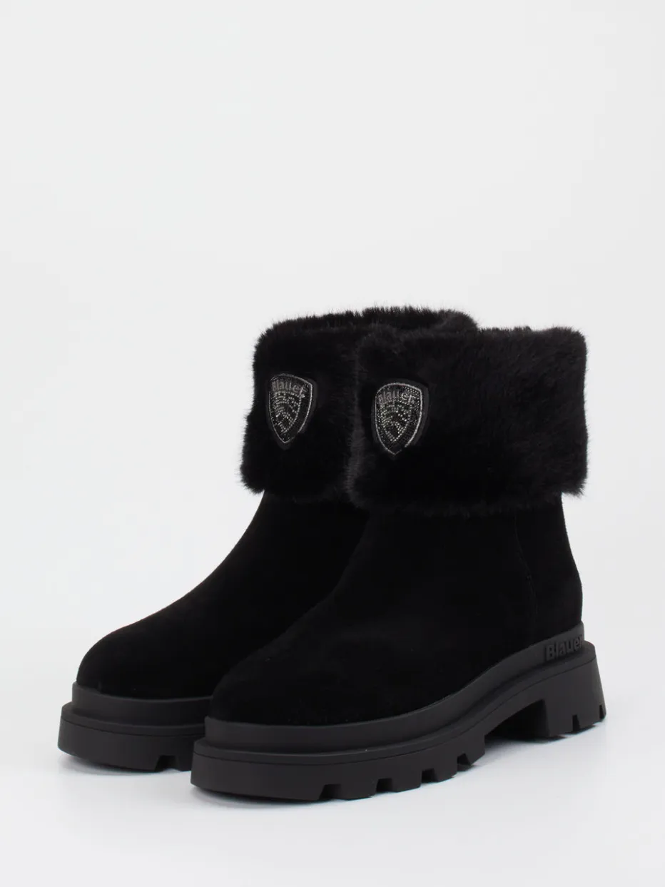 Die Marke Blauer präsentiert eine moderne Damen-Stiefelette aus hochwertigem Veloursleder.