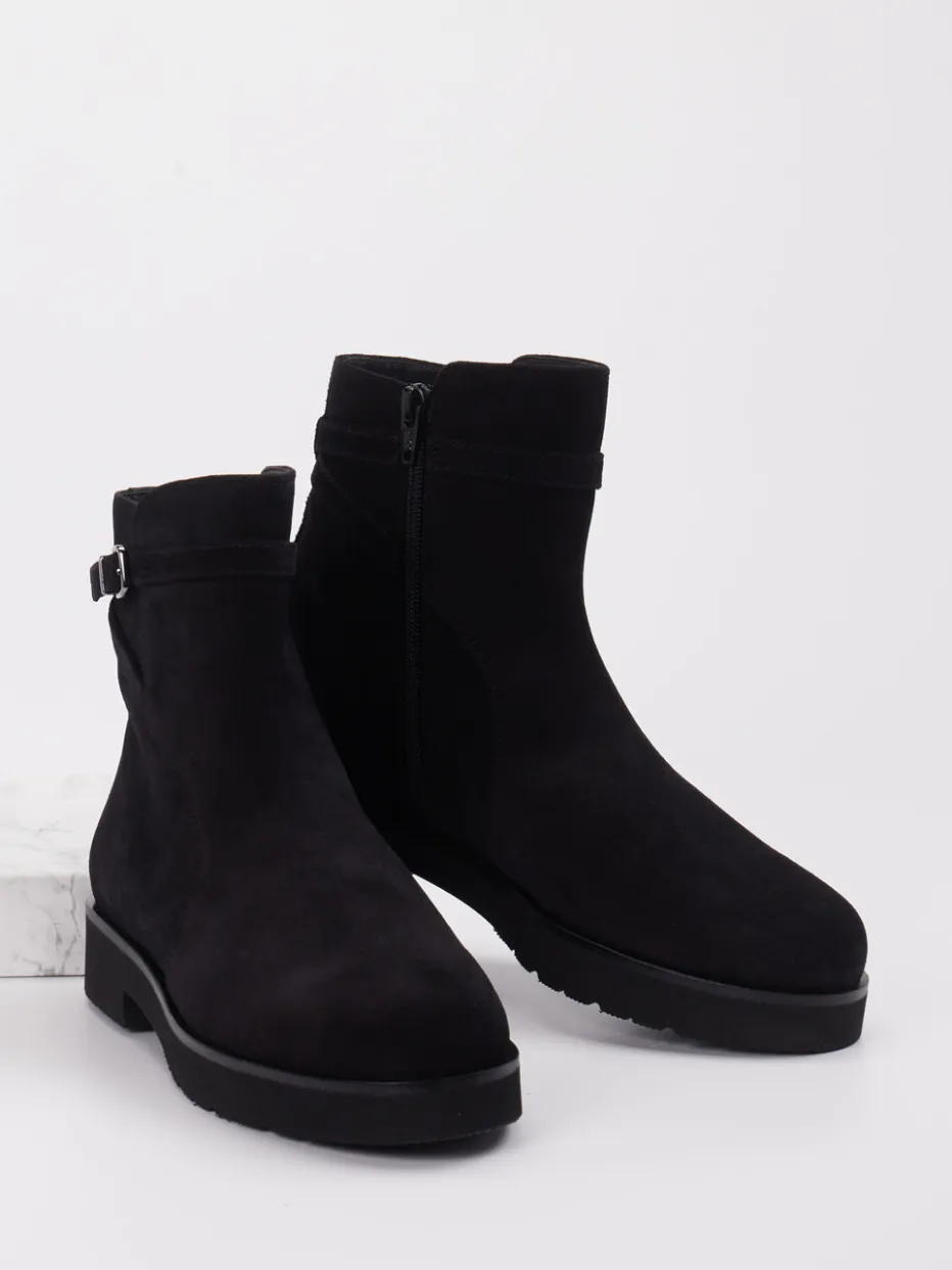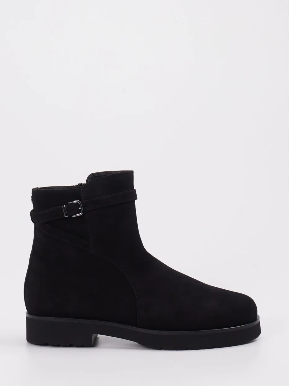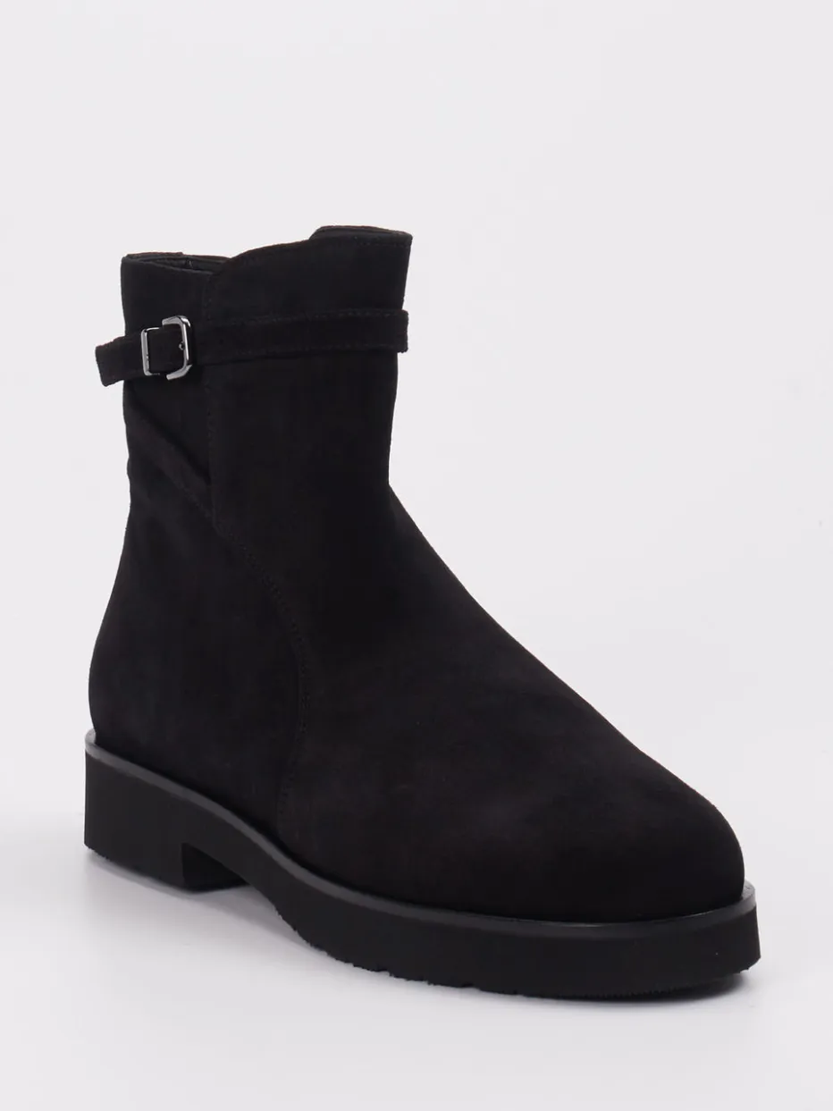 Diese schwarze Veloursleder-Stiefelette von Hassia vereint funktionale Eleganz mit dezenter Detailverarbeitung. Ideal für urbane Alltagslooks mit einem Gefühl von stillem Luxus.