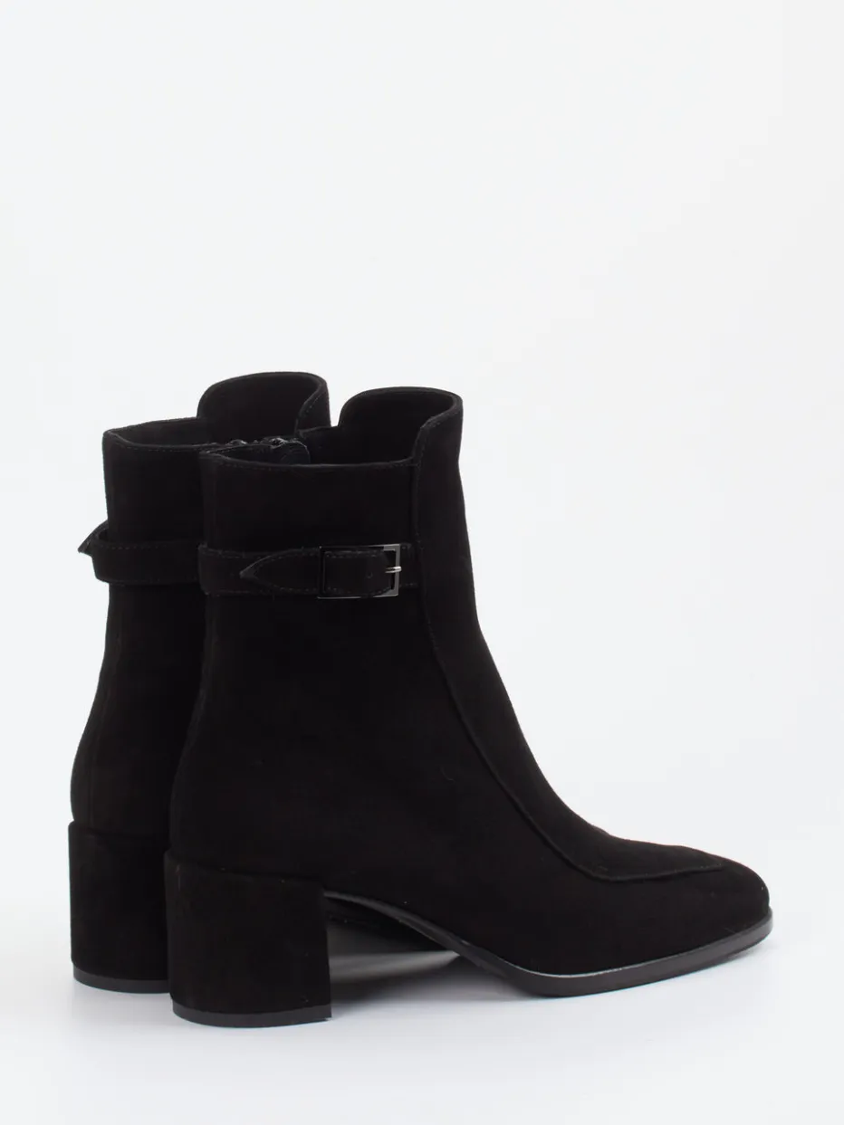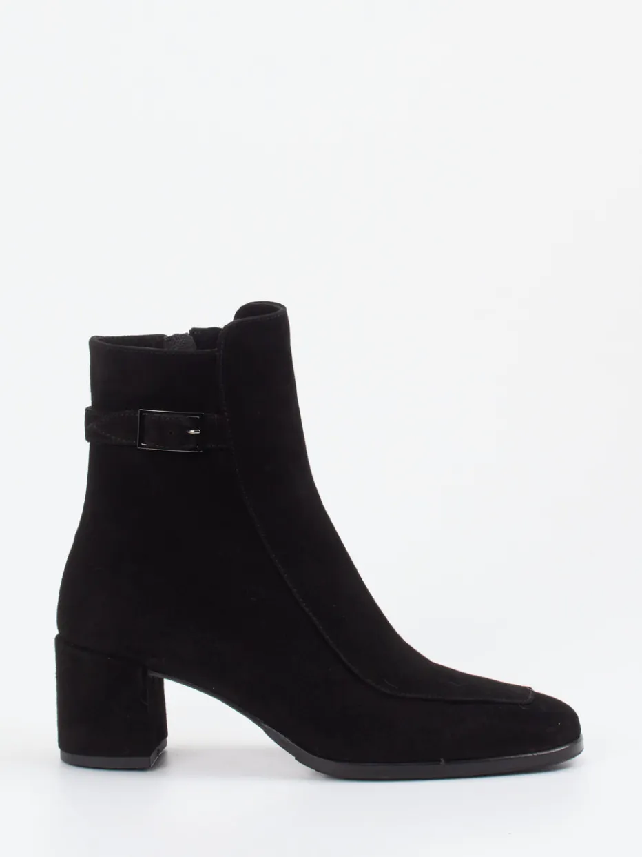 Diese Stiefelette kombiniert samtig mattes Veloursleder mit minimalistischer Eleganz. Die dekorative Schnalle setzt ein stilvolles Detail, das dem Modell zeitlose Raffinesse verleiht.