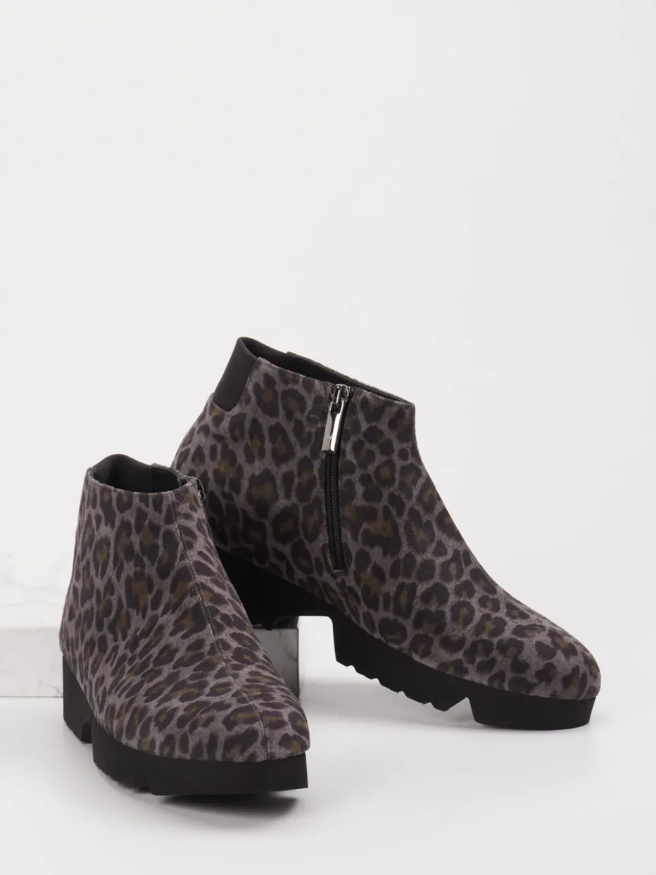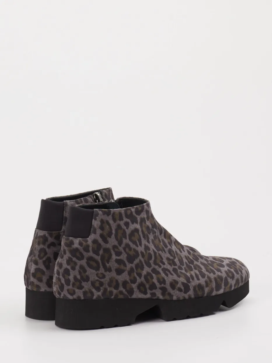 Die Stiefelette von Thierry Rabotin vereint Veloursleder mit trendigem Leoprint und chunky Gummisohle – ein urbanes Statement für modische Herbst-Looks.