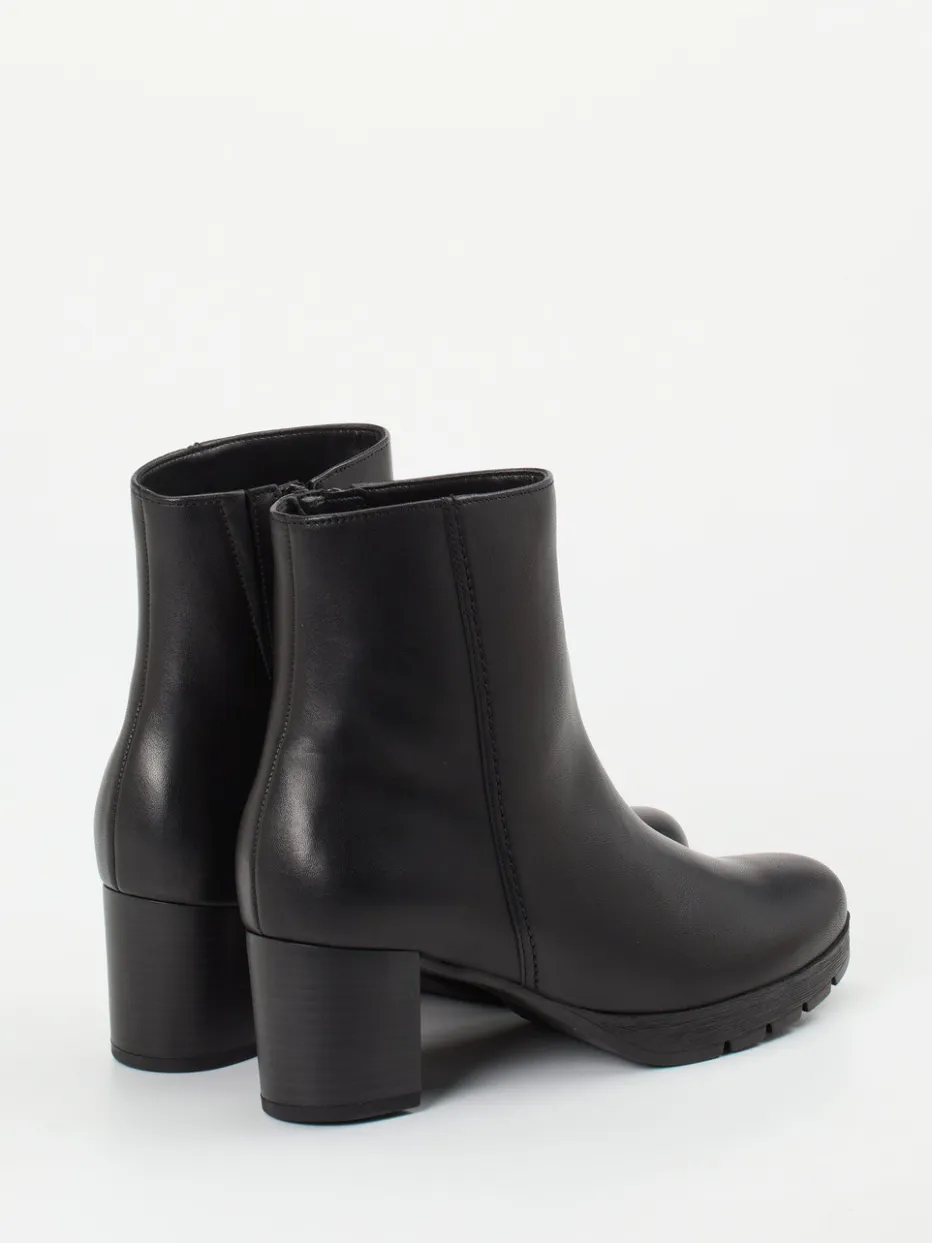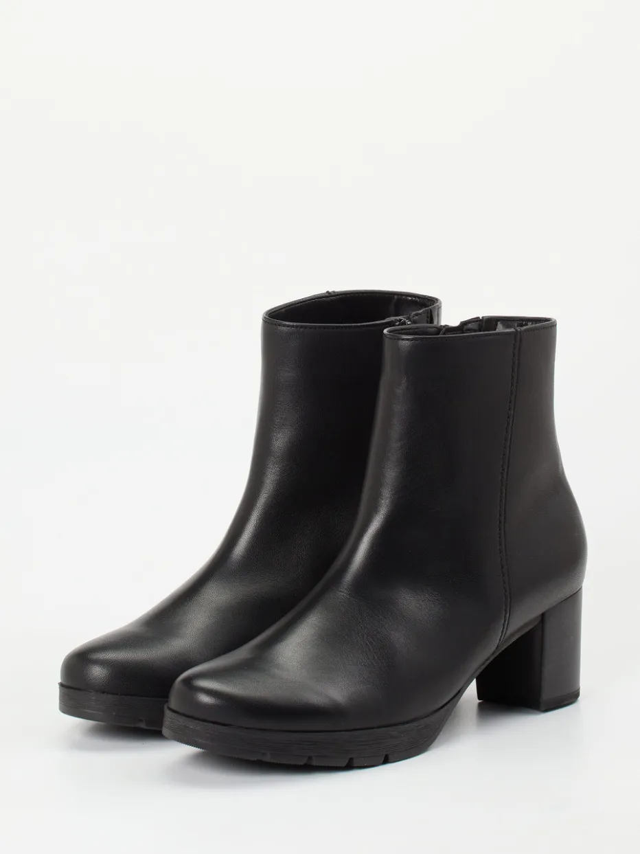 Zeitloses Design trifft funktionale Details: Diese Stiefeletten kombinieren geschmeidiges Kalbleder mit profilierter Gummisohle und bieten ein Plus an Komfort für Alltag und Büro.