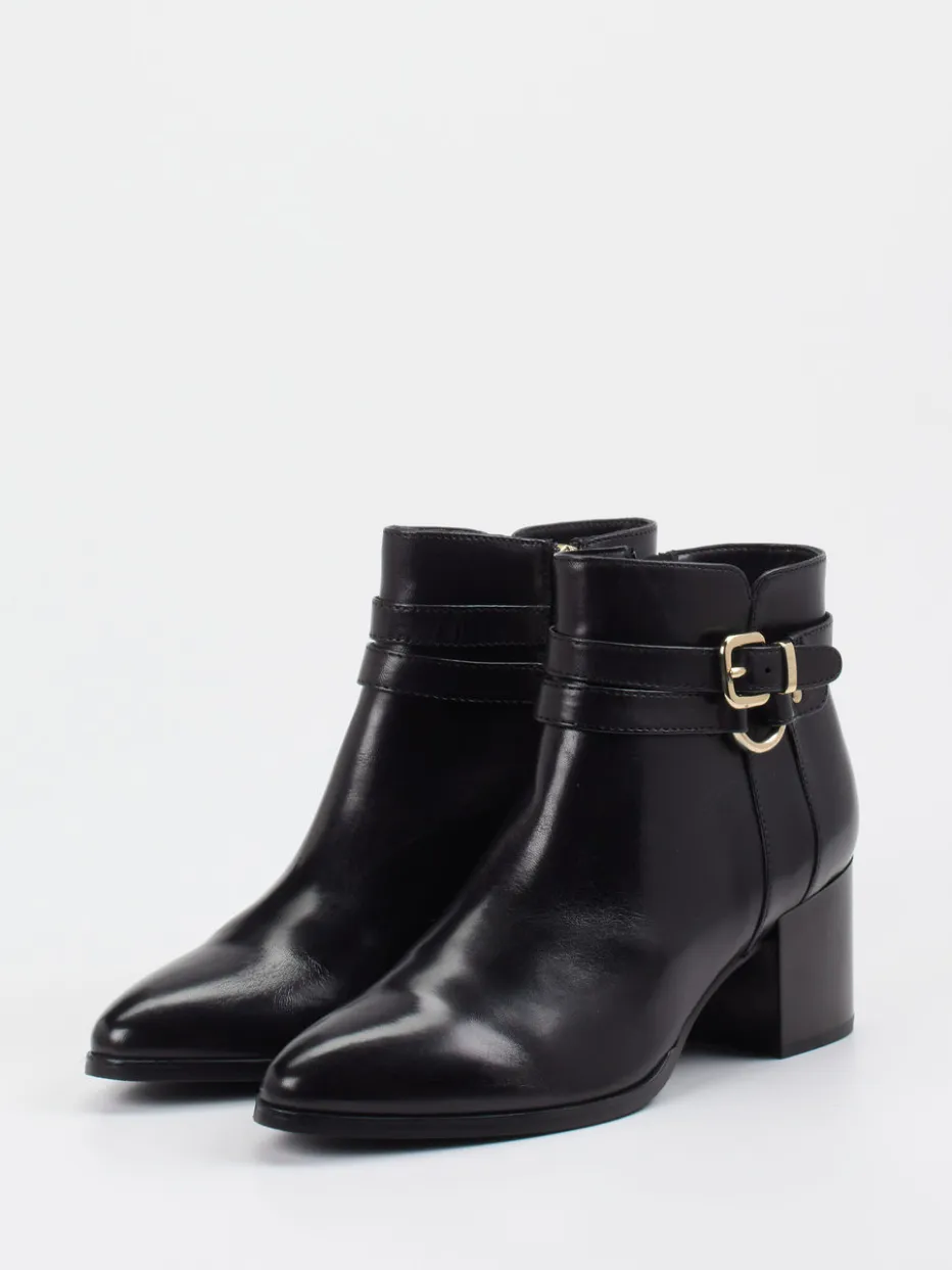 Reduktion trifft Raffinesse.Die Marke Ralph Harrison zeigt mit dieser Stiefelette eine klassische Interpretation moderner Ankle Boots. Glänzendes, schwarzes Kalbleder und eine goldfarbene Zierschnalle verleihen dem Modell eine stilvolle Note – passend für Büro und Freizeit. Der knöchelhohe Schnitt wird durch einen dezenten Reißverschluss ergänzt, während die profilierte Gummisohle sicheren Tritt bietet. Feine Ton-in-Ton-Nähte und ein 5,5 cm hoher Blockabsatz runden das cleane Design ab. Der Look verkörpert den Trend „Quiet Luxury“ mit minimalistischer Eleganz. Ideal kombinierbar zu Wollmantel oder Lederhandtasche. Ein stilvoller Begleiter mit makelloser Linienführung und hochwertiger Verarbeitung.