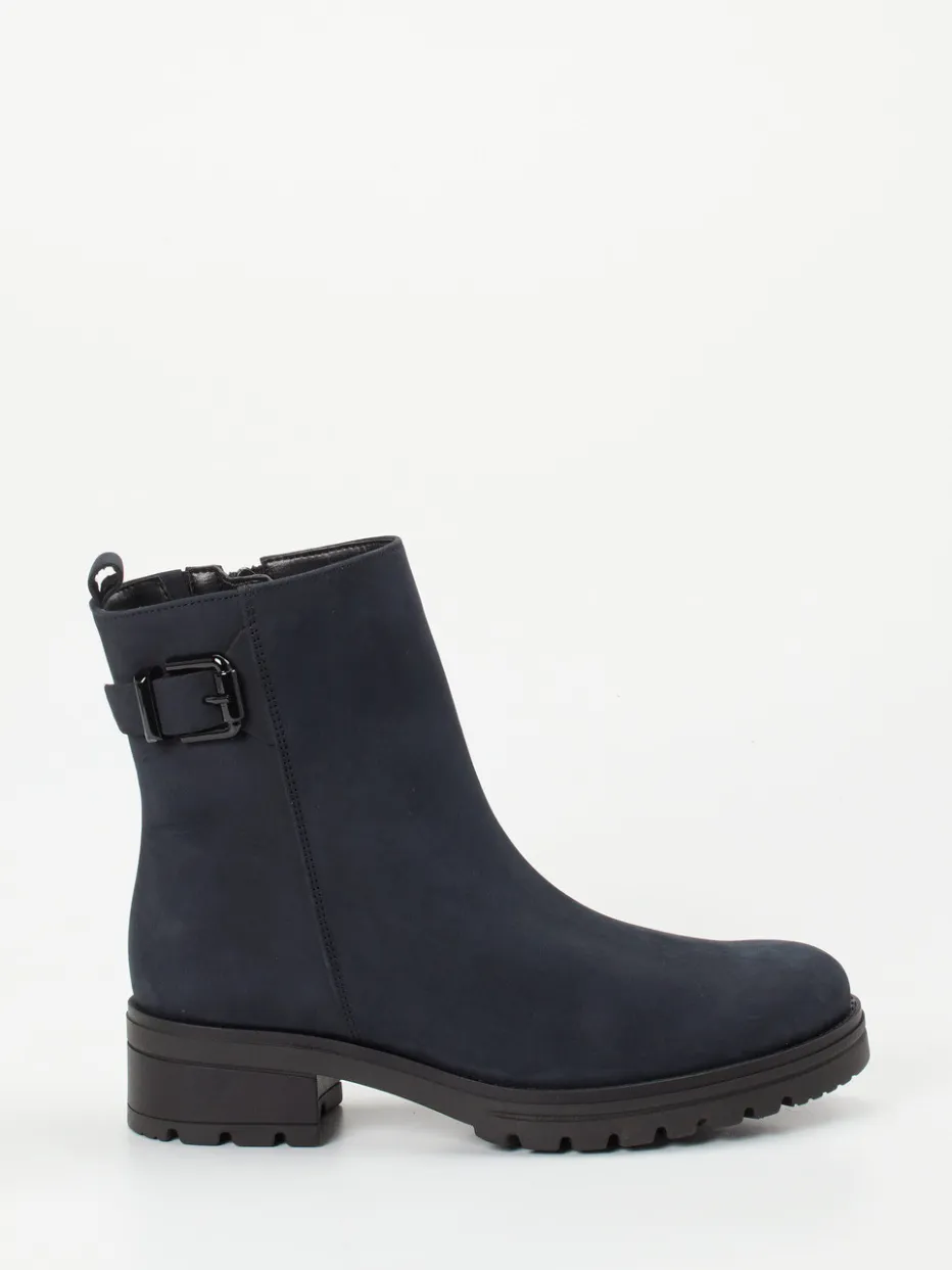 Nubukleder in samtigem Dunkelblau, kombiniert mit einer profilierten Gummisohle und Reißverschluss, bringt Komfort und urbanen Chic gekonnt zusammen.