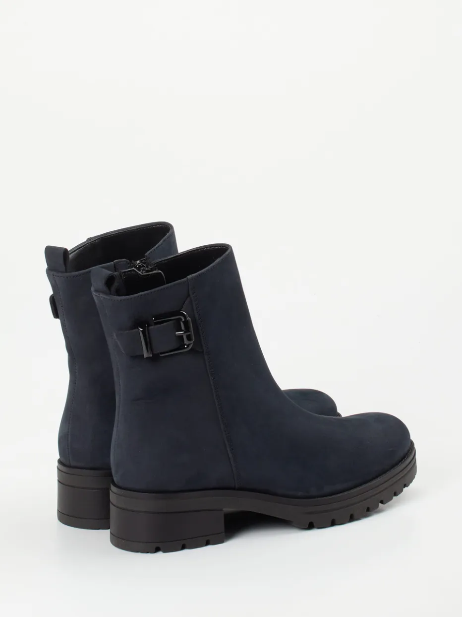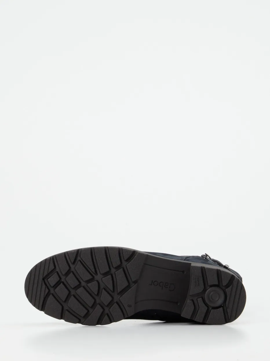 Präzise für Alltag und Business gedacht.Die Marke Gabor Comfort zeigt mit dieser Stiefelette ihren Fokus auf Tragekomfort und reduzierte Eleganz. Für kühlere Tage im Büro oder beim Stadtbummel bietet dieser dunkelblaue Ankle Boot dank Fleecefutter angenehme Wärme. Das samtig angeschliffene Nubukleder verleiht Struktur und Tiefe, während die geradlinige Formgebung und dezente Schnalle für ein zurückhaltend-stilvolles Gesamtbild sorgen. Der seitliche Reißverschluss ermöglicht bequemes Anziehen, die profilierte Gummisohle greift den Utility-Trend auf und bietet guten Halt. Ideal zu Cropped-Hosen in Wolloptik oder oversized Strick. Komfortstark und modisch unaufdringlich – ein städtischer Allrounder von Gabor Comfort.