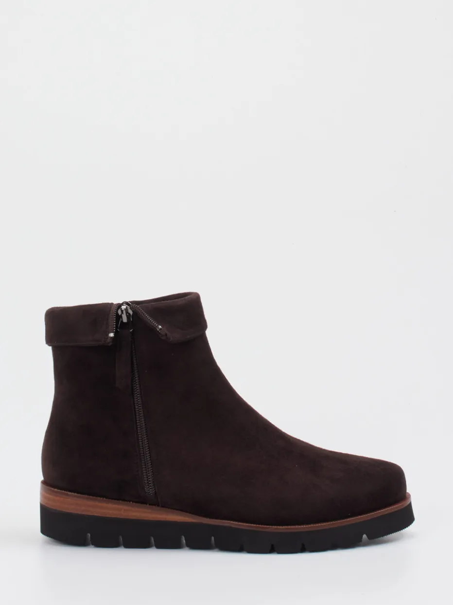 Klassisch und kompromisslos komfortabel: Diese Stiefelette aus warmem Veloursleder verbindet leise Eleganz mit urbaner Funktionalität.