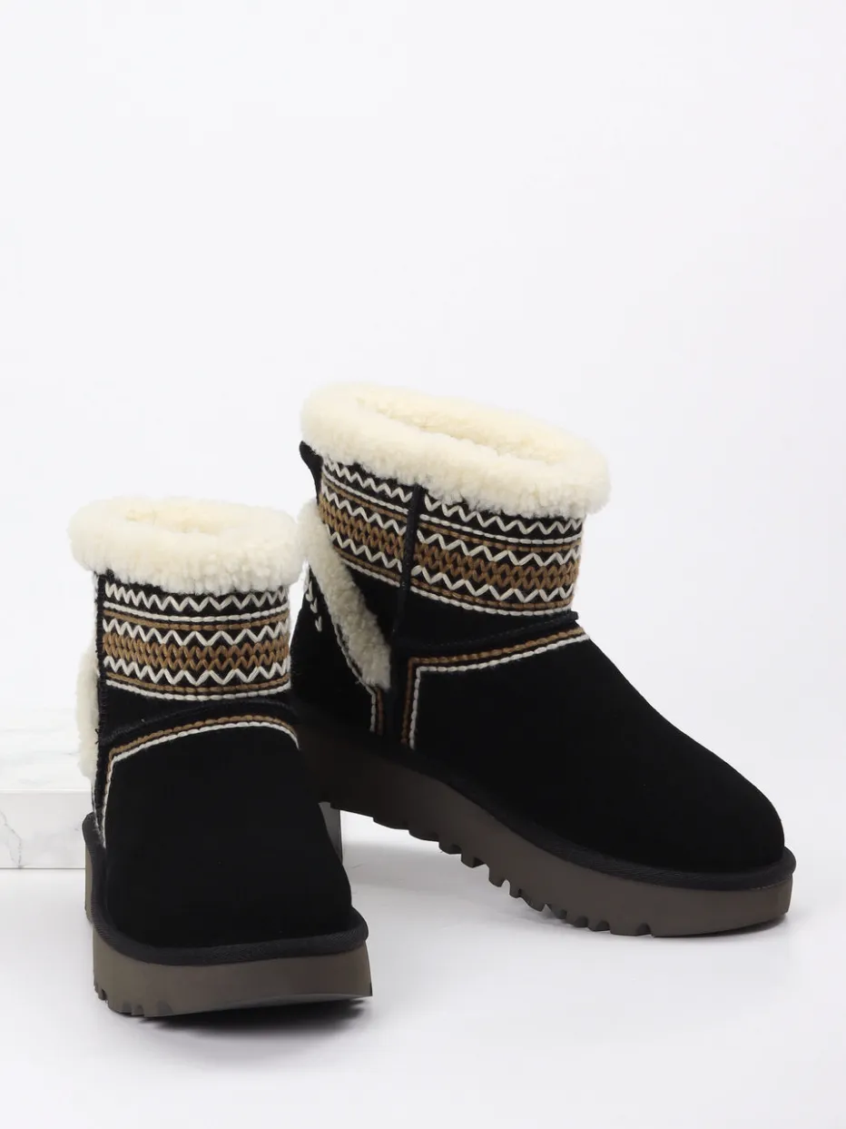 Diese Winter-Stiefeletten von UGG vereinen luxuriöses Lammfellfutter mit markanter Ethno-Stickerei und bringen lässigen Boho-Charme in kalte Tage.