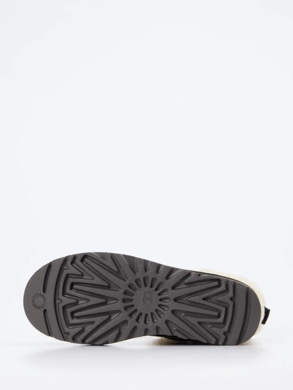 Schwarz trifft auf Wärme und Ethno-Flair.Die Marke UGG präsentiert eine stilvolle Stiefelette für Damen, die Komfort und winterliche Ästhetik vereint. Ideal für entspannte Spaziergänge oder gemütliche Tage im Freien überzeugt die knöchelhohe Schlupfstiefelette mit schwarzem Veloursleder und einer samtig-matten Oberfläche. Das warme Lammfellfutter tritt an den Kanten sichtbar hervor und unterstreicht zusammen mit detailreichen Ethno-Stickereien die Boho-inspirierte Optik. Eine graue, profilierte Gummisohle bietet Rutschfestigkeit, während die klassische Passform durch eine rückseitige Zuglasche ergänzt wird. Kombiniert mit Strickaccessoires entsteht ein harmonischer Winter-Look. UGG verbindet traditionelle Handwerksdetails mit verlässlicher Winterfunktionalität.
