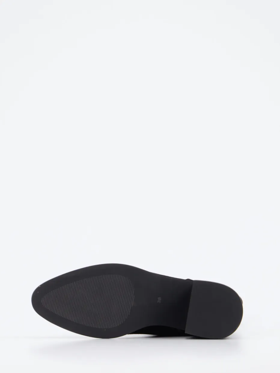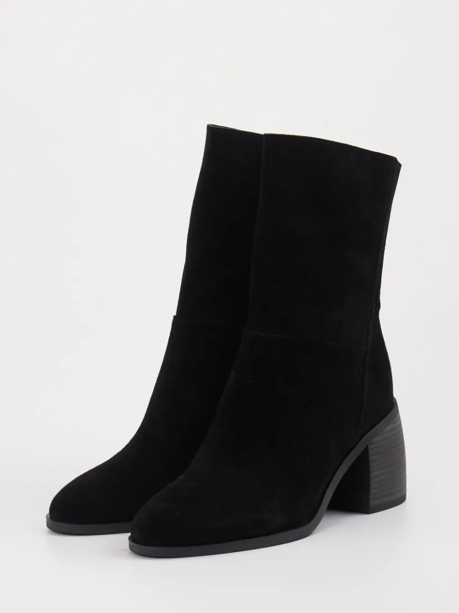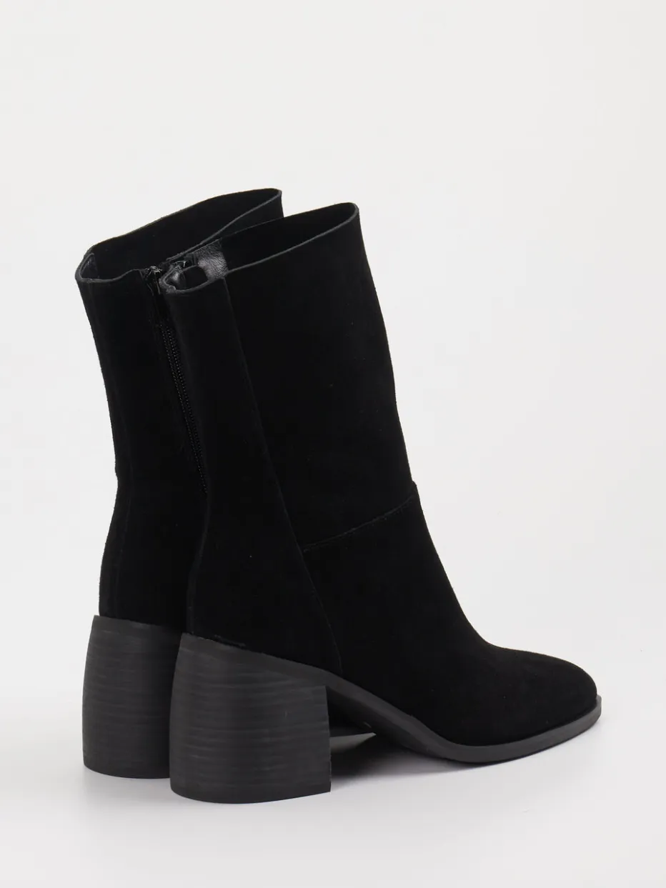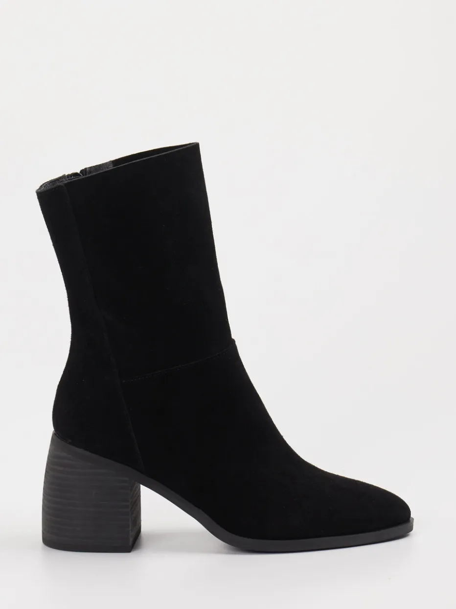 Die klassische Form und das matte Veloursleder machen diese schwarze Stiefelette von Di Lauro zur stilvollen Wahl für Büro und Freizeit. Der strukturierte Blockabsatz sorgt für Komfort mit modischem Anspruch.