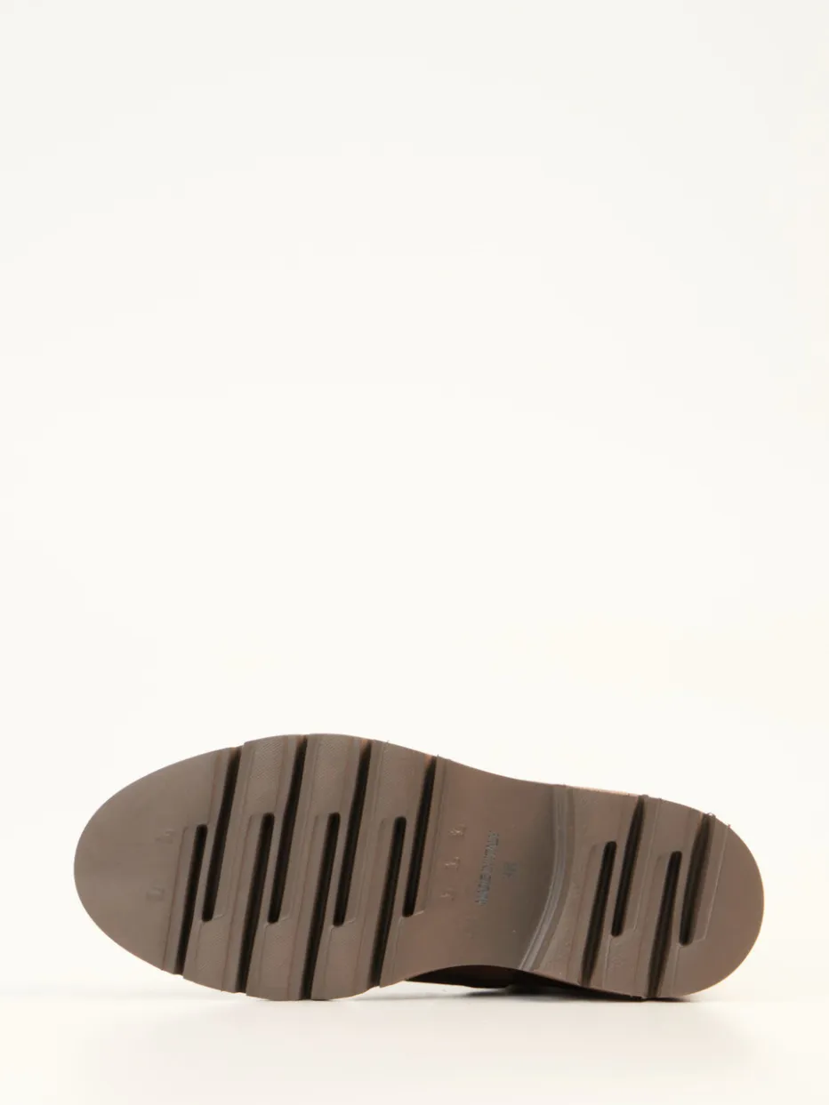 Herbststil trifft Komfortstruktur.Mannori präsentiert mit dieser Damen-Stiefelette eine moderne Interpretation des klassischen Loafer-Boots. Ideal für kühle Herbsttage im Büro oder beim Stadtbummel: Das edle braune Veloursleder zeigt sich angenehm samtig und wird durch strukturierte Elastikeinsätze sowie eine charakteristische Zierlasche im Loafer-Stil akzentuiert. Dank der weichen Ziegenlederfütterung, der gepolsterten Innensohle und der griffigen Leichtzellsohle mit textilgerahmtem Design bietet das Modell hervorragenden Komfort. Die knöchelhohe Form mit Stretch-Komforteinsatz schützt vor Nässe, während die chunky Sohle modische Akzente setzt. Lässt sich perfekt zu Strickkleidern oder Oversized-Mänteln kombinieren. Ein eleganter Hybrid für stilbewusste Casual-Looks mit Modernität und Substanz.