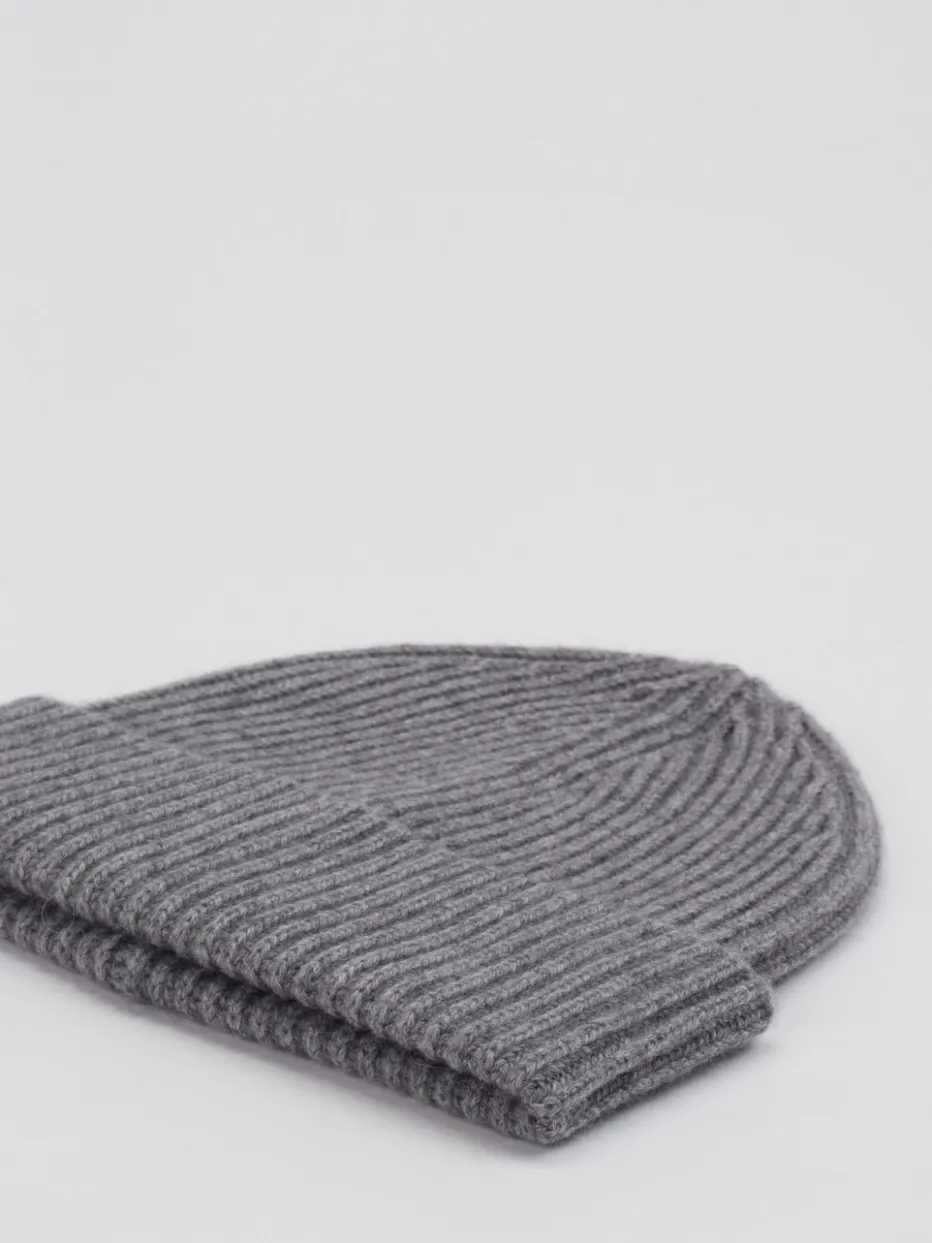 Die klassische Rippstrickmütze aus reinem Kaschmir vereint schlichte Eleganz mit hochwertigem Tragekomfort – ein stilvolles Essential für die kühle Jahreszeit.