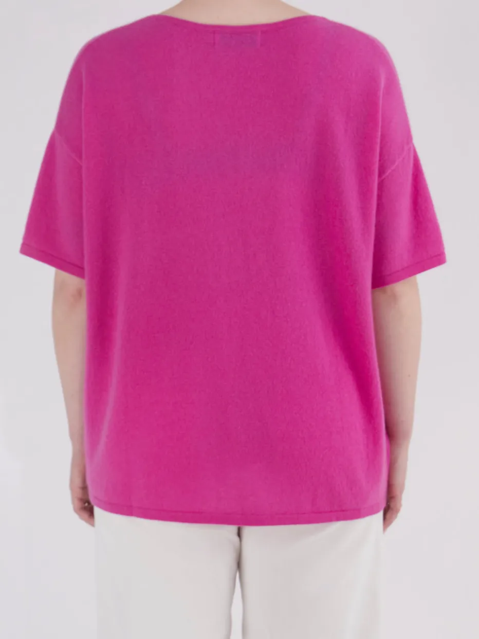 Der edle Kaschmir-Feinstrick bietet luxuriösen Tragekomfort in einer frischen, pinken Farbgebung. Ideal für reduzierte Looks mit femininer Note.