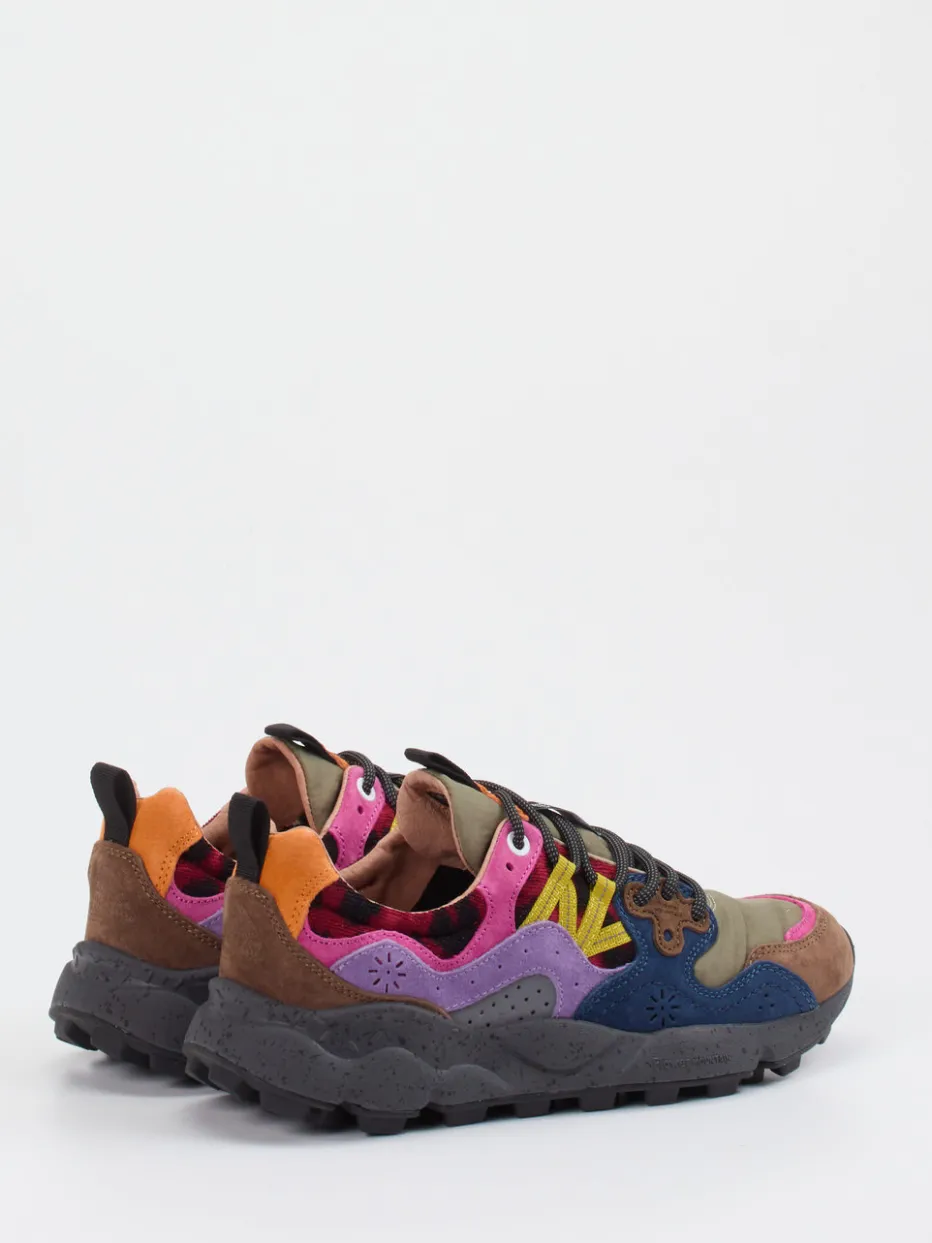 Multicolor-Design für jede Route.Flower Mountain zeigt hier einen modischen Trail-Sneaker, der Funktion und Ästhetik souverän vereint. Ob im urbanen Alltag oder auf unbefestigten Wegen – das Modell überzeugt durch eine Multicolor-Optik mit olivgrüner Basis und mehrfarbigen Overlays im Patchwork-Stil. Gefertigt aus Veloursleder und Textil mit matter Oberfläche präsentiert sich der voluminös geschnittene Schuh mit Schnürung, reflektierenden Details und gepolstertem Einstieg. Die griffige Gummisohle verspricht Stabilität auf unterschiedlichem Terrain. Gorpcore und Color-Blocking treffen hier auf authentische Streetwear-Einflüsse. Kombiniert mit Utility-Rucksack oder Outdoor-Jacke entsteht ein markanter Look. Flower Mountain steht für funktionalen Stil mit expressivem Charakter.